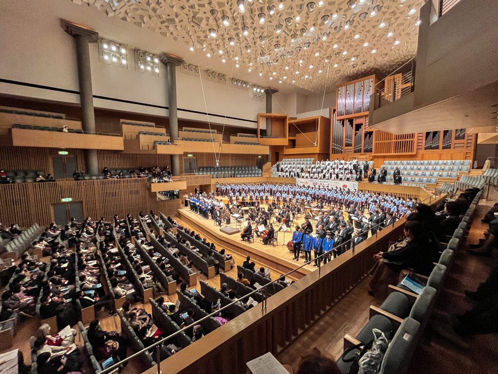 今回のプロジェクトでは、京都洛西ロータリークラブの会員が、前日の練習では会員の殆どが参加、当日は会員の9割を超える45名がステージに立つ事ができました。京都洛西RCメンバーにおいては、殆どの会員が中学校以来という合唱にチャレンジする事に多少の戸惑いがあったと思いますが、2022年7月1日より例会終了後1時間、合唱の先生をお呼びし、練習を続けてきました。合唱曲は混声3部、混声4部とし、大変難解な選曲でしたが、7ヶ月余りに及ぶ練習と京都市少年合唱団の子ども達、OB会合唱団の方々との合同練習などを経て徐々に参加意識が高まりました。
