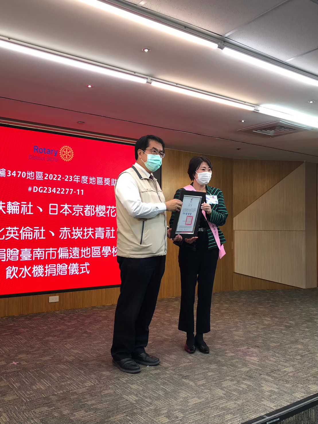 2023年2月23日18名の会員と会員家族でサッカムRCの15周年に参加した際、台南市黄市長と教育委員長から台南市役所にて感謝状を拝受した。のちの懇親会では教育委員長と学校関係者から、実際子供達の喜ぶ声を聞くことができ感謝されたことに感動するひと時であった。