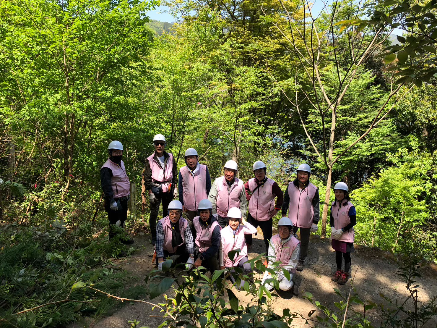 危険を伴う急勾配な森に平均年齢60歳のクラブで大丈夫かと一瞬怯みましたが、若手が山の危険なところに率先して入り、技術者は猪などに破られた金網の修理に従事、女性やお年寄り(おこられるー)は除伐した木々をひきづりながら一箇所に集める作業にと3部隊で取り掛かりました。最初は鬱蒼としてみえにくかった桂川の川や対岸の景色がきれいに見え森が大変明るくなりました。汗を流した分いただけた感動の瞬間。山に光が入った!!と引率の京都市担当の方々と共に大喜びした日となりました。来年は予算を取ってさらに森をきれいにそして植樹も計画しようと決意を固めました。