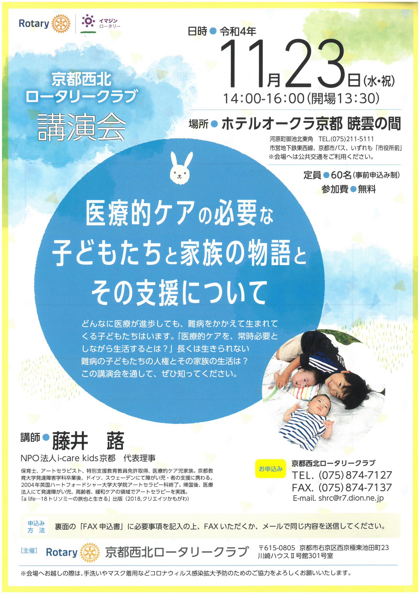 NPO法人 i-care kids京都 代表理事 藤井 蕗様をお招きして講演会を開催いたします。