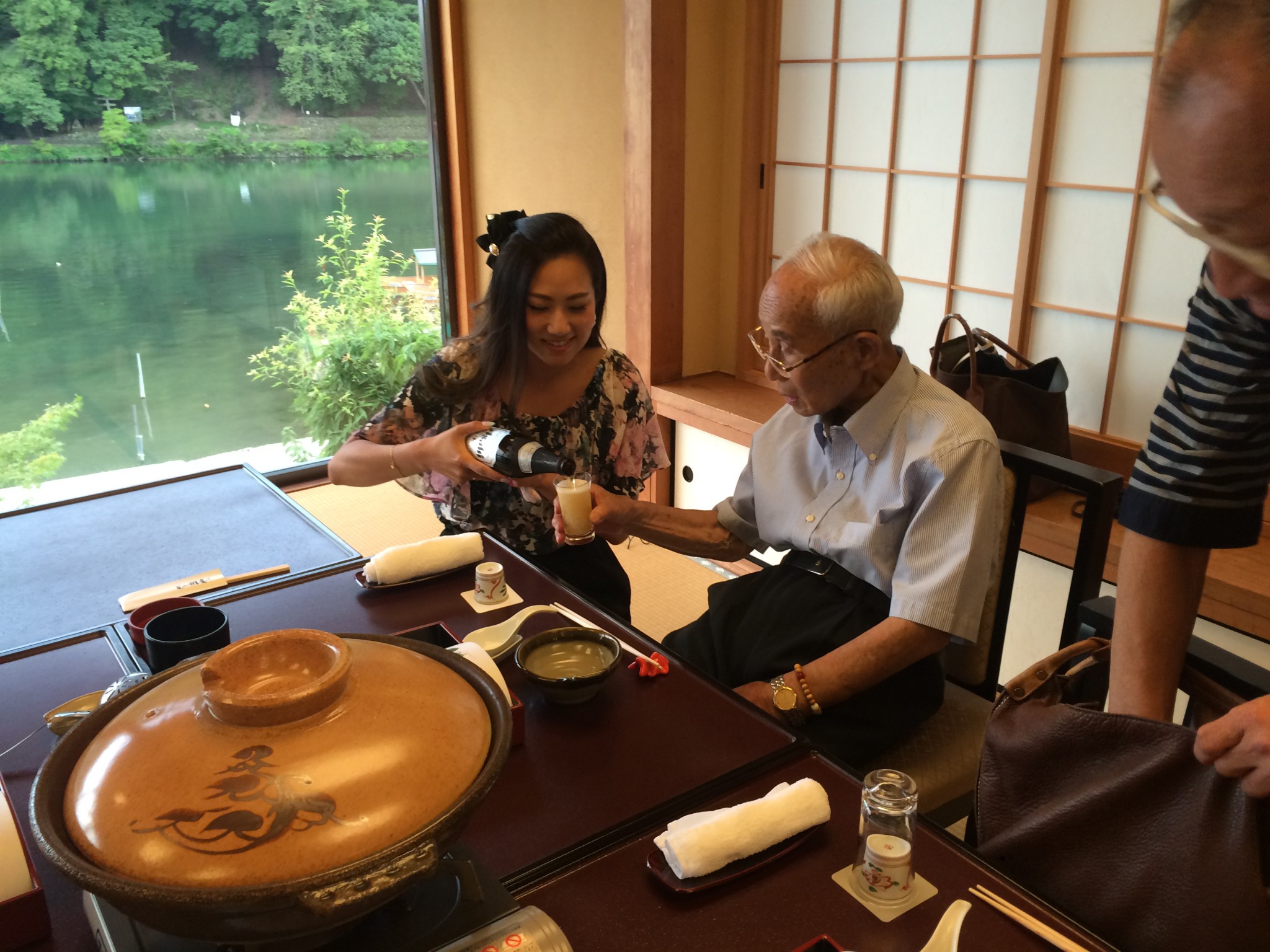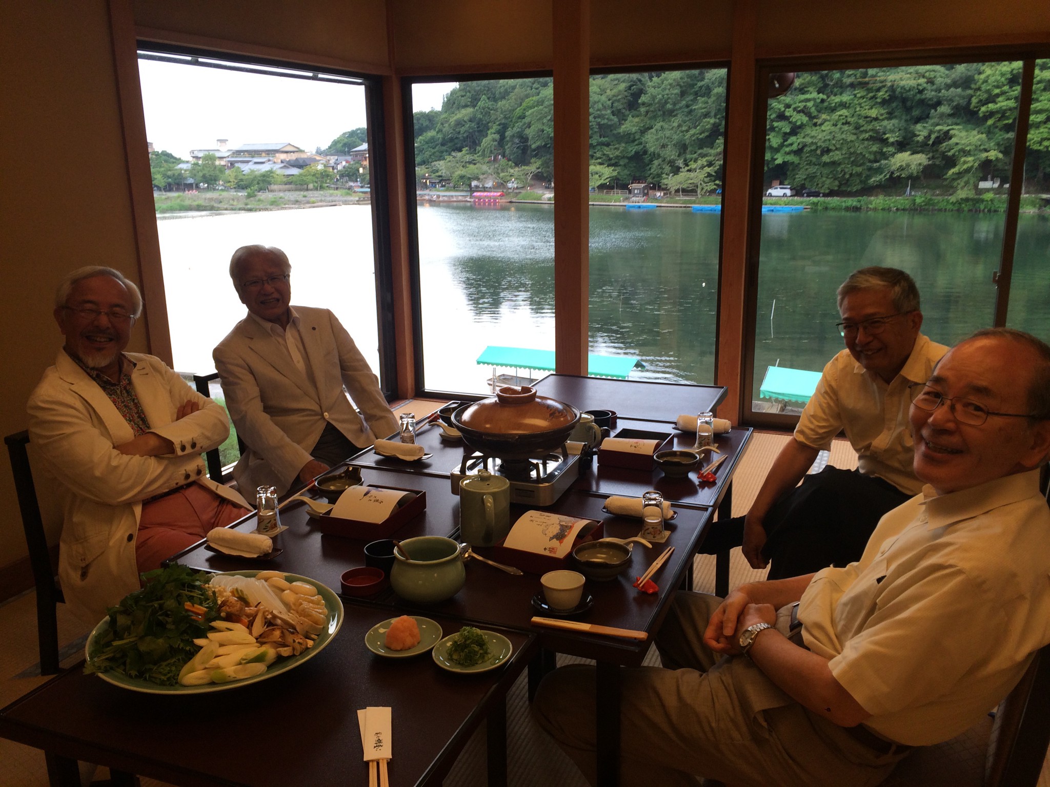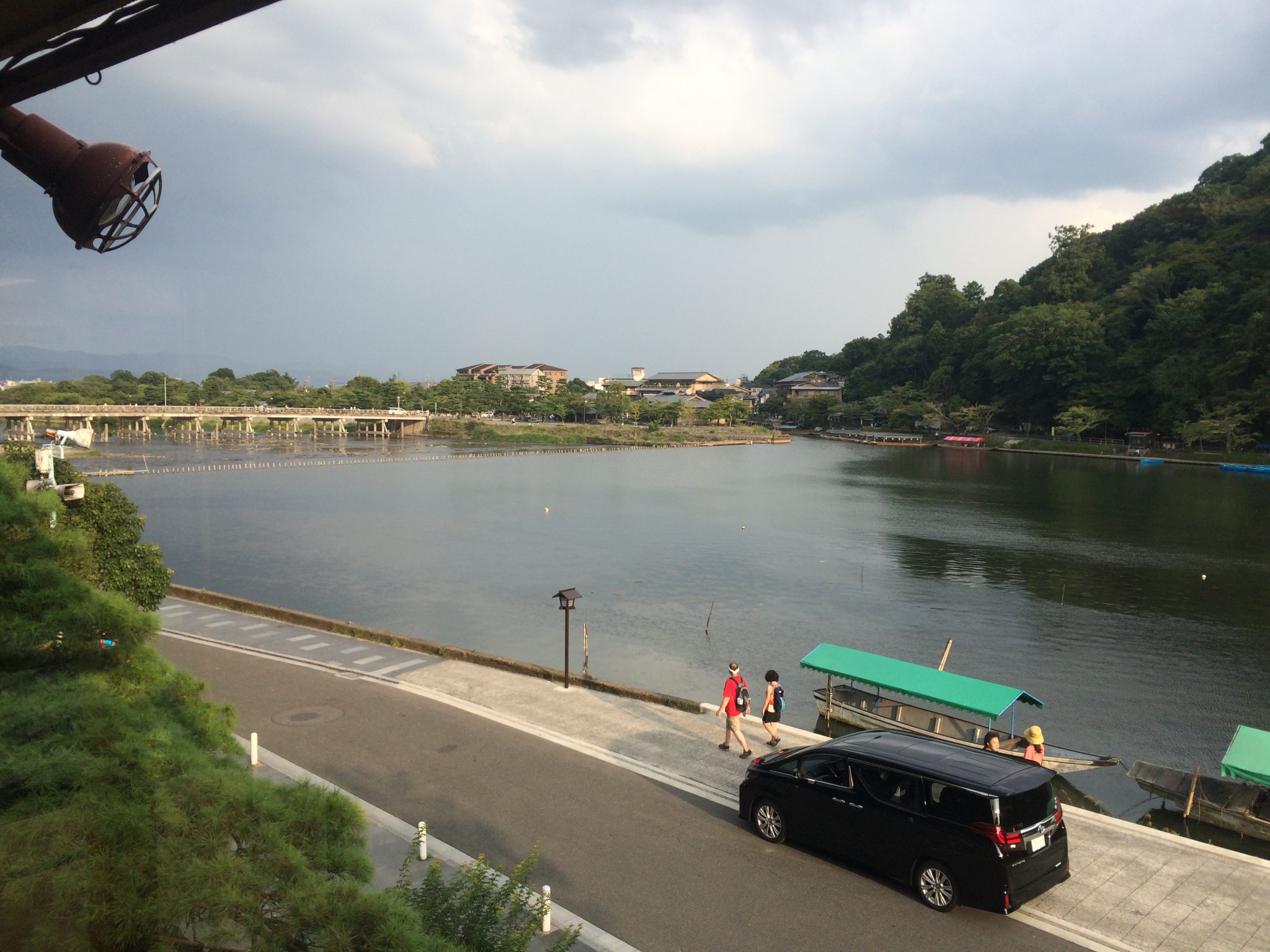 保津川と渡月橋が見える素晴らしいお部屋で、鱧しゃぶをご馳走になりました。