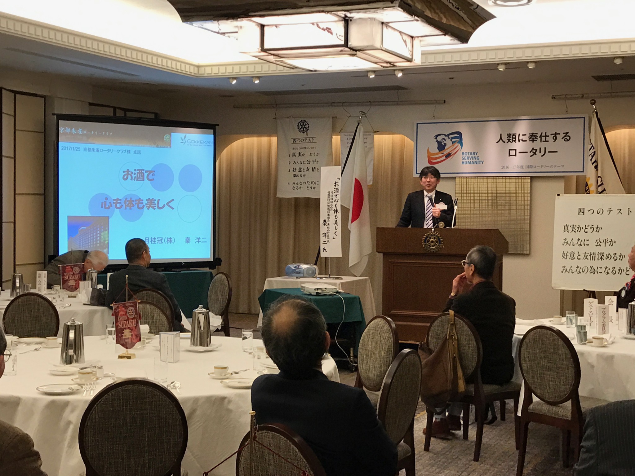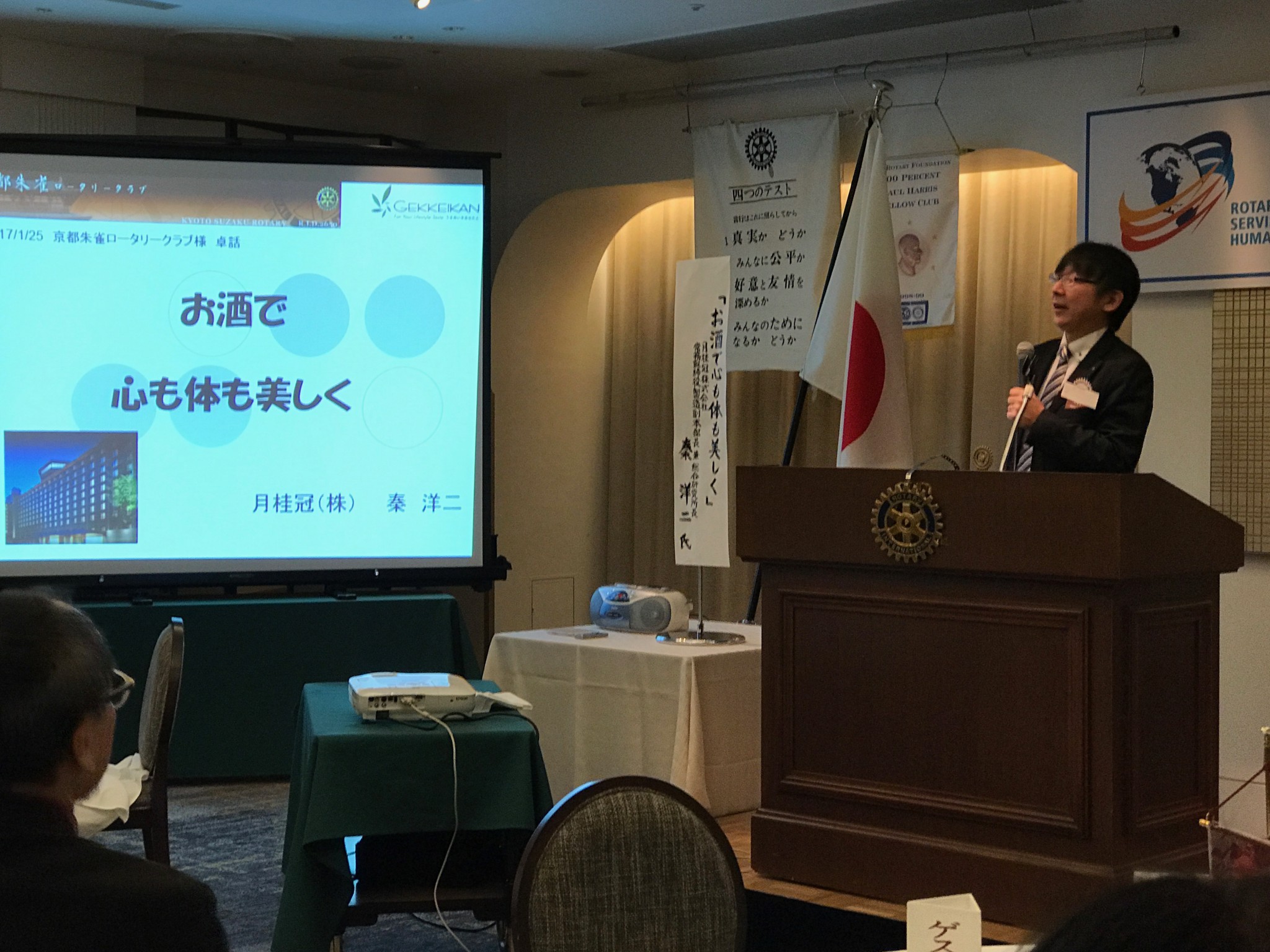 そして今日の卓話は「お酒で心も体も美しく」というテーマで月桂冠株式会社常務取締役秦洋二様にお話しいただきました。