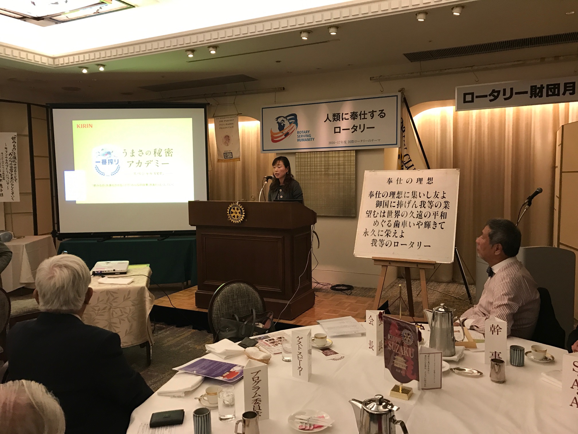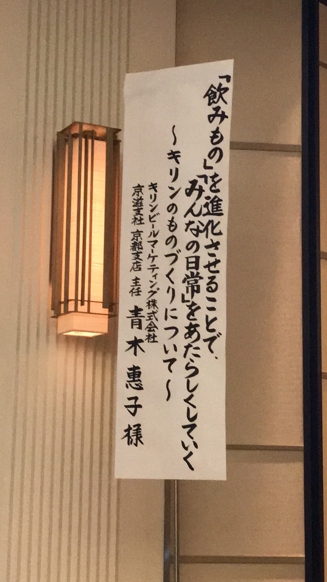 本日は南麒会でお世話になっているキリンビールマーケティング株式会社京滋支社・青木恵子氏に【飲みものを進化させることでみんなの日常を新しくしていく〜キリンのものづくりについて】と題しまして卓話をしていただきました。