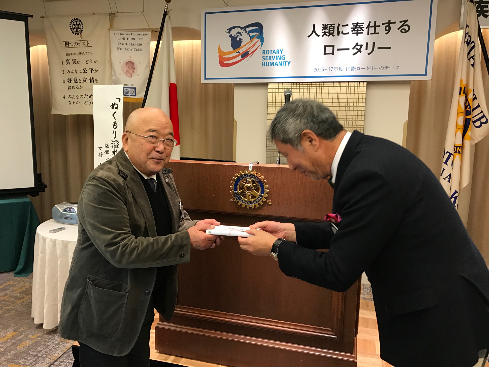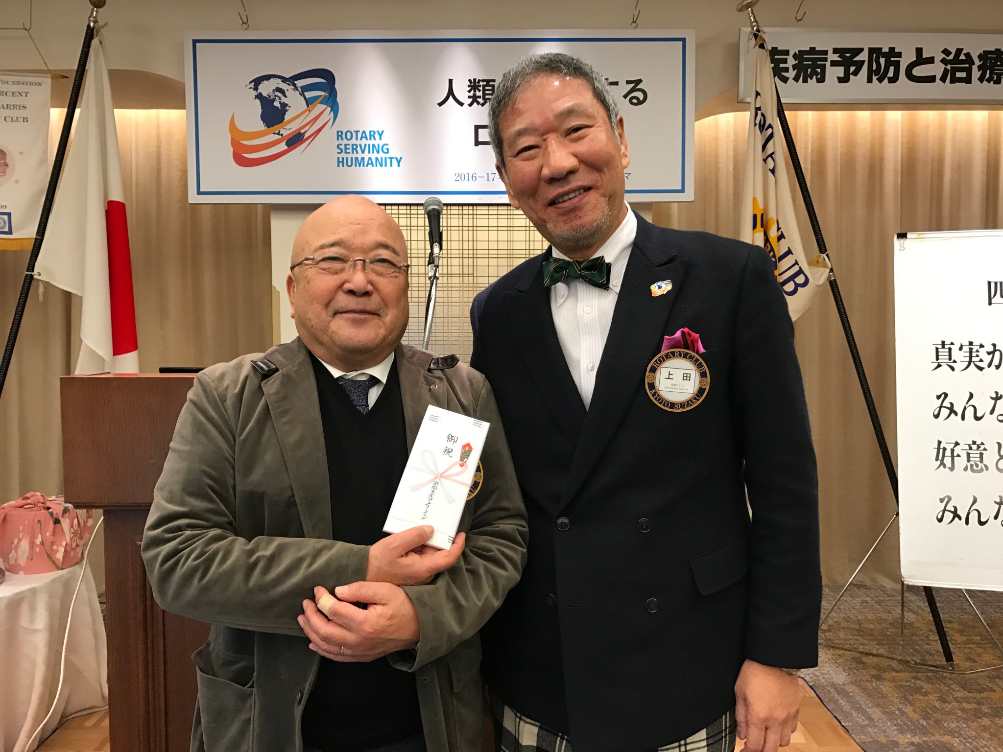 12月誕生日の中村会員が出席されましたので、上田会長からお祝いとショートスピーチをいただきました。