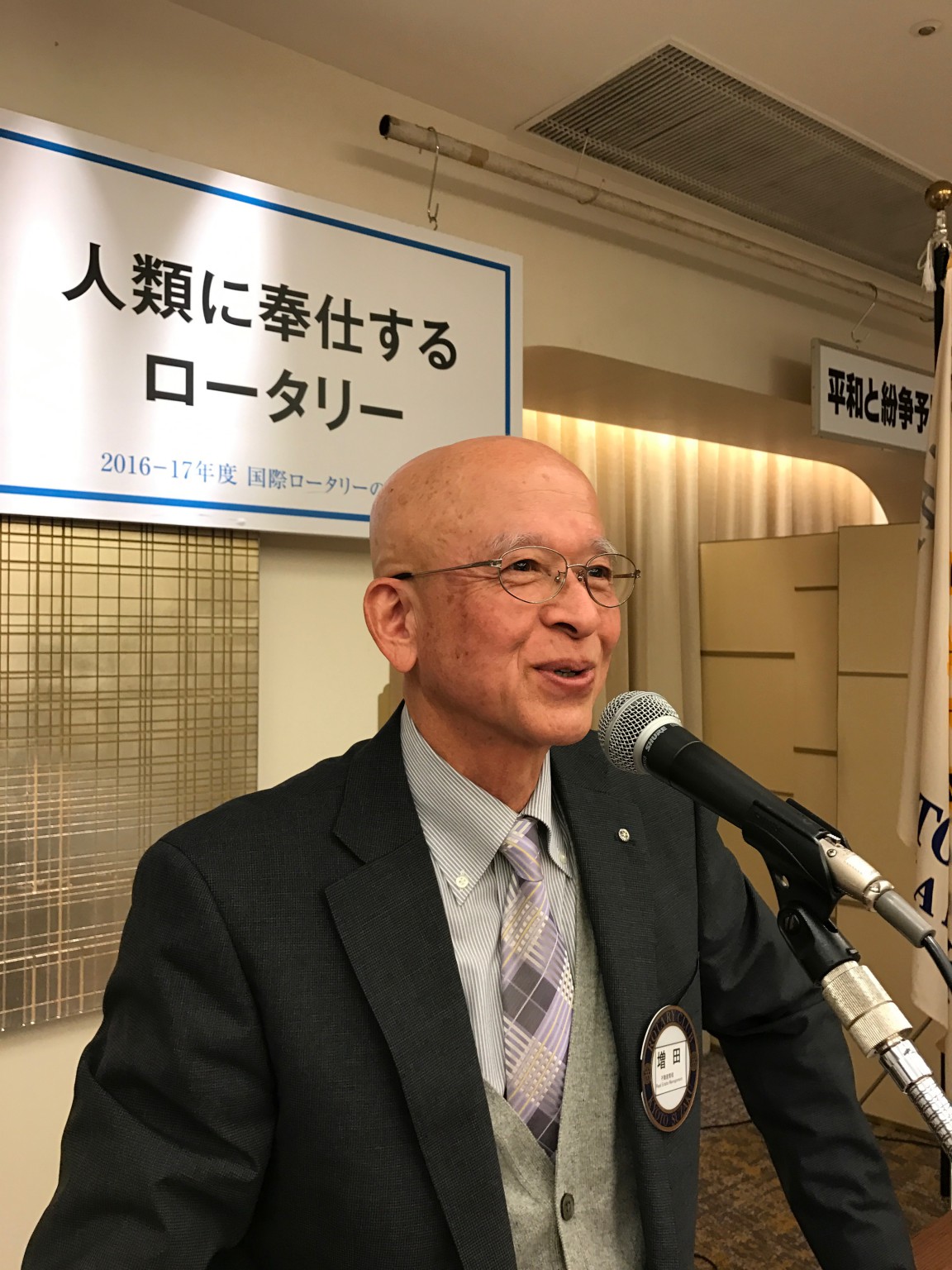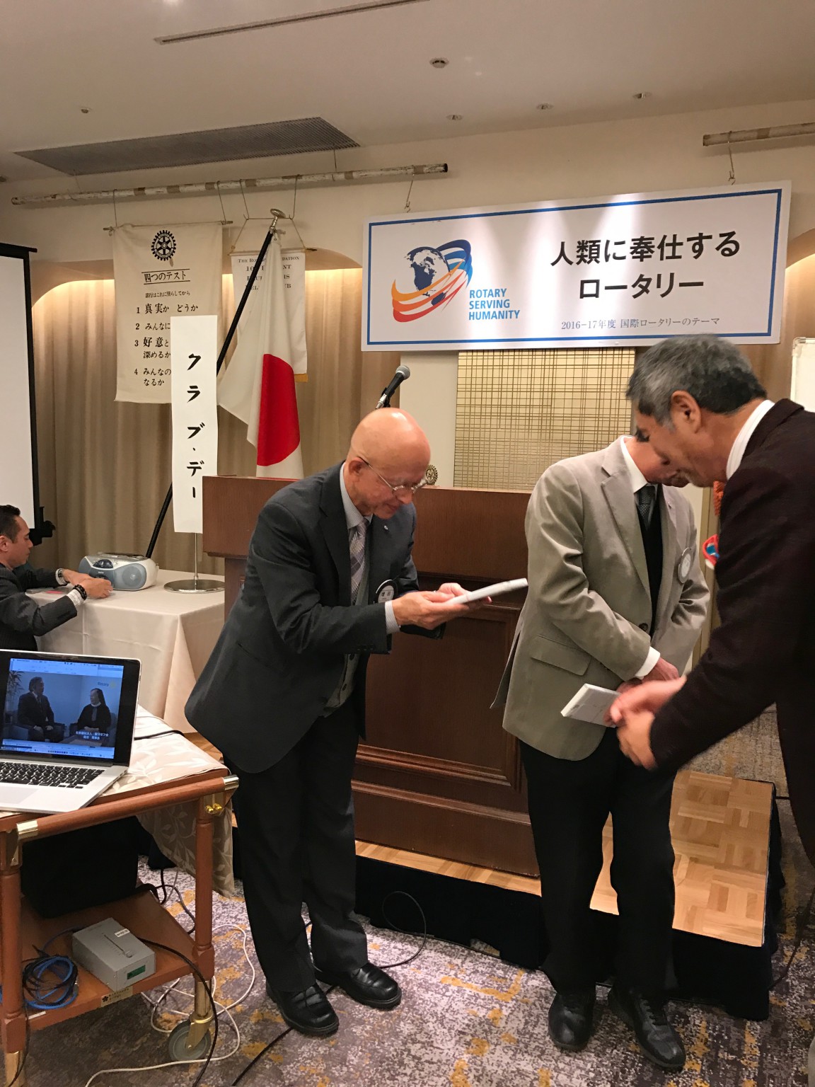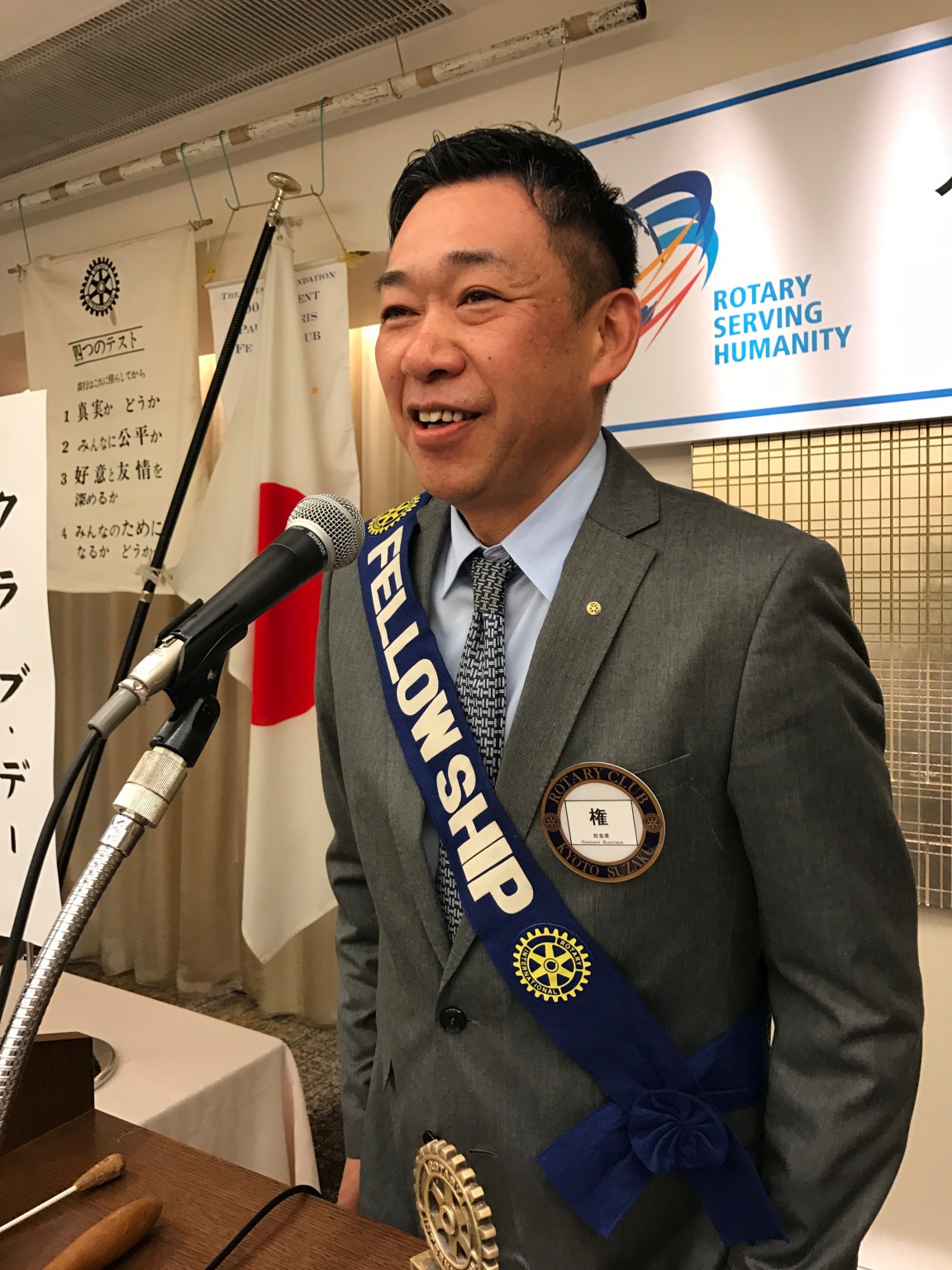 会員みんなでお祝いし、記念撮影とショートスピーチをいただきました。