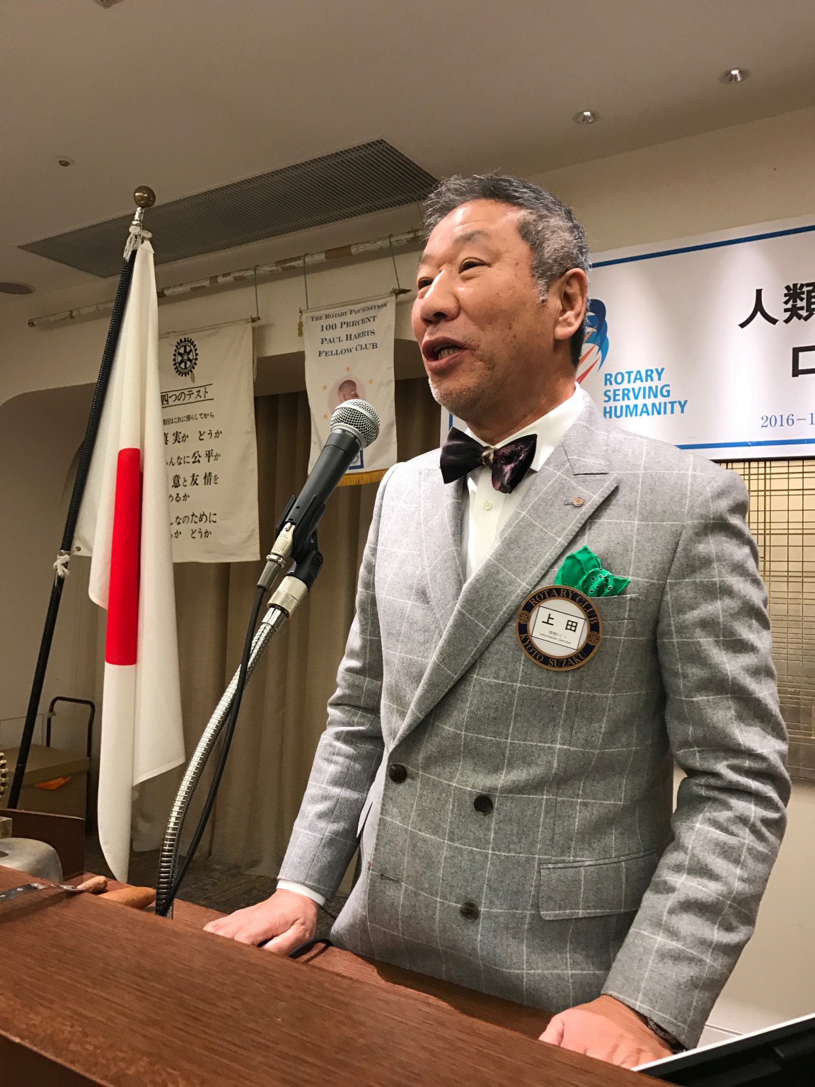 上田会長の開会点鐘と開会宣言から例会開始でございます。