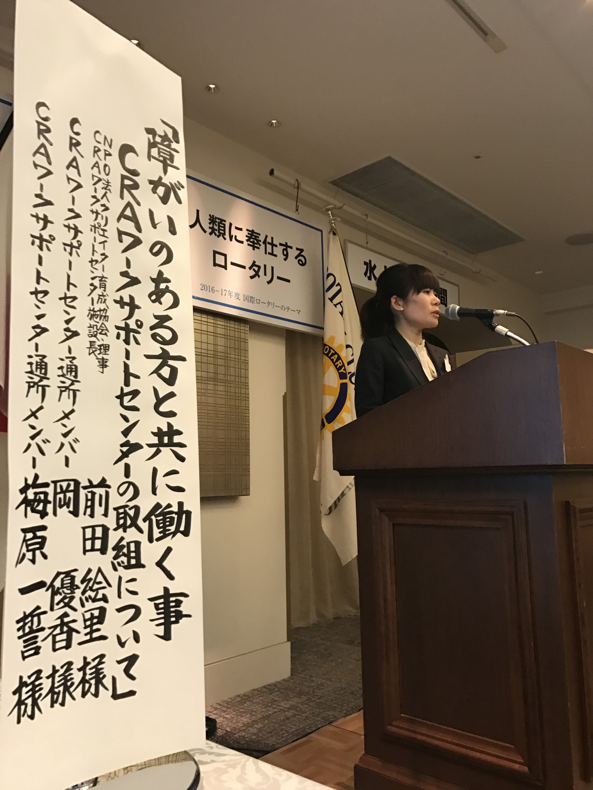 本日の卓話は、【障がいのある方と共に働く事 CRAワークサポートセンターの取り組みについて】というテーマで、NPO法人クリエイター育成協会理事の前田絵里氏にお話しをいただきました。