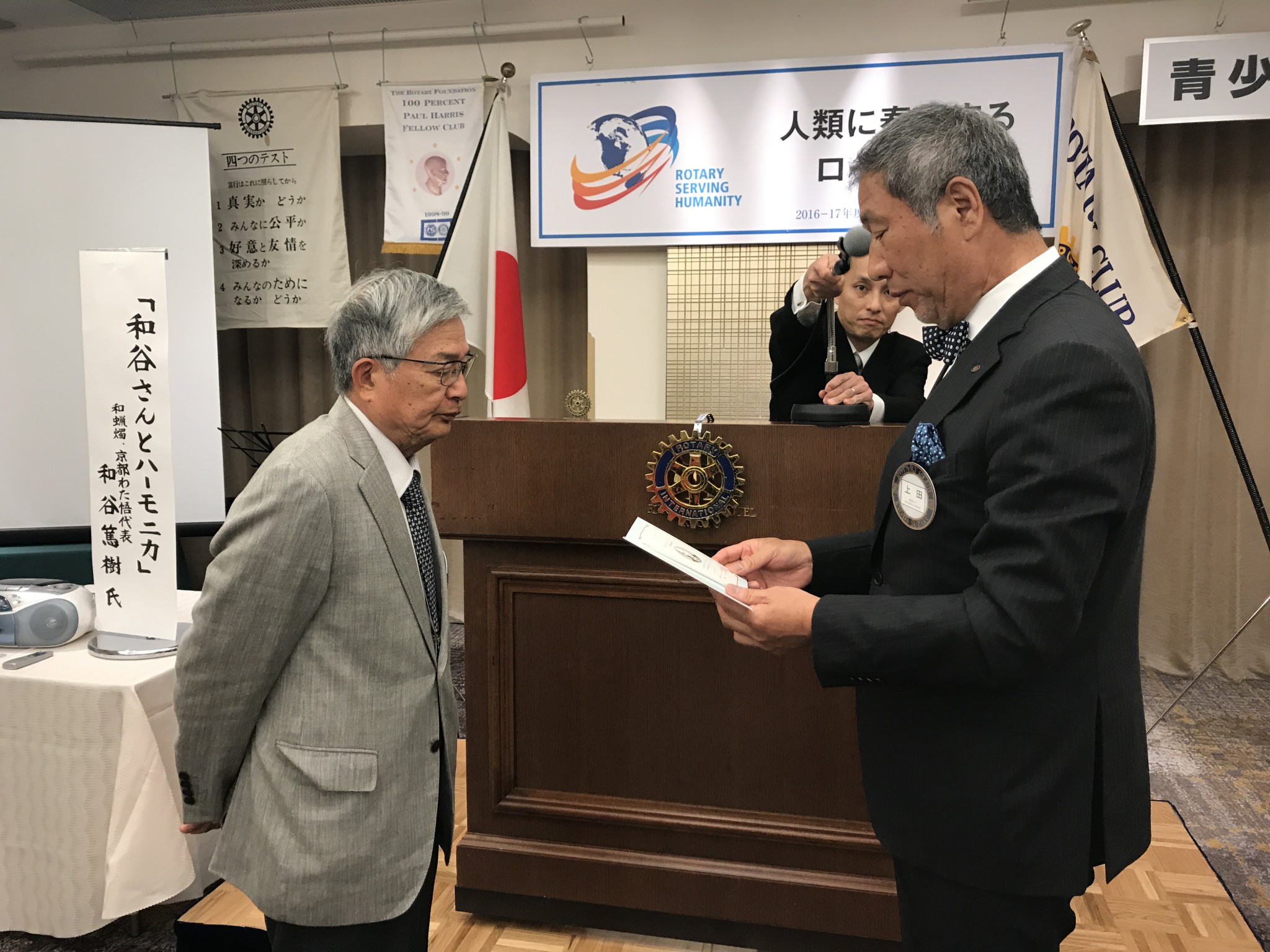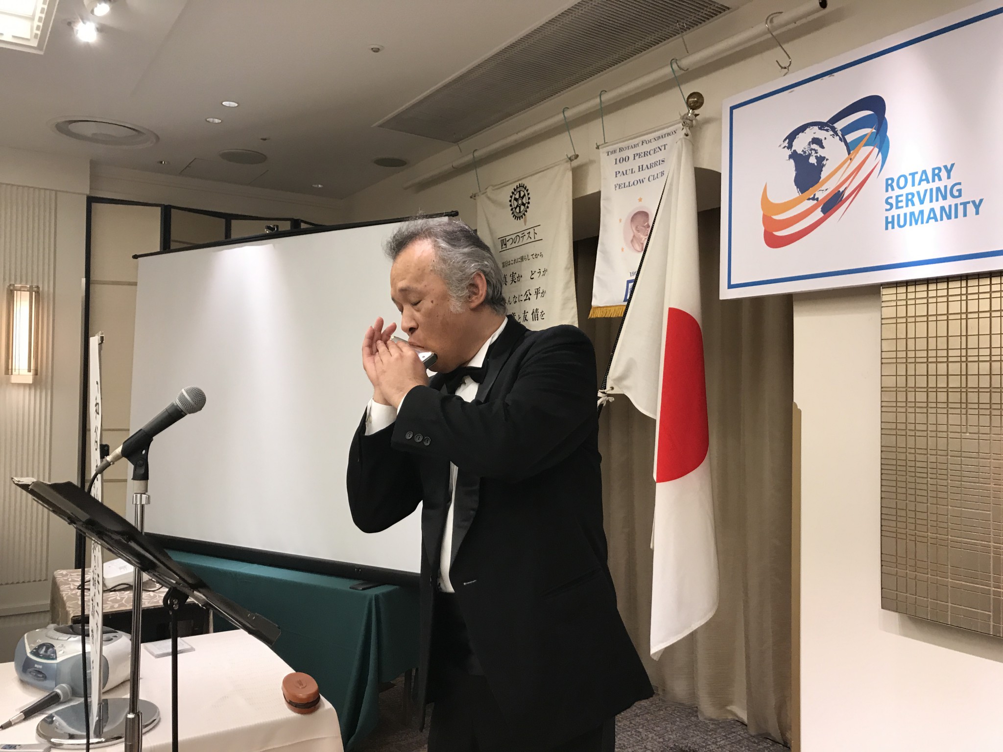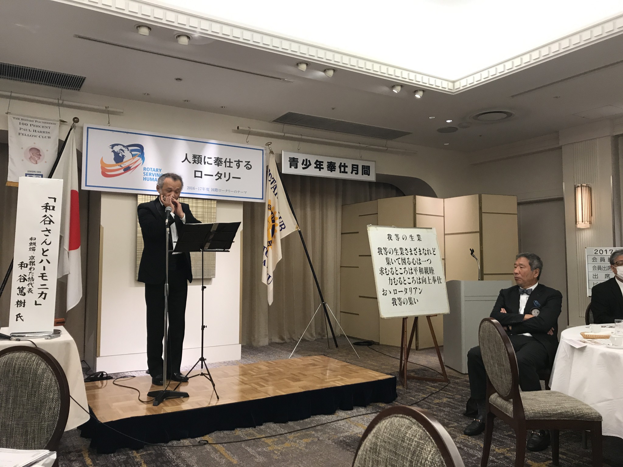 【5月10日】本日の卓話は『和谷さんとハーモニカ』というテーマで、和谷篤樹氏にお話しいただきました。
