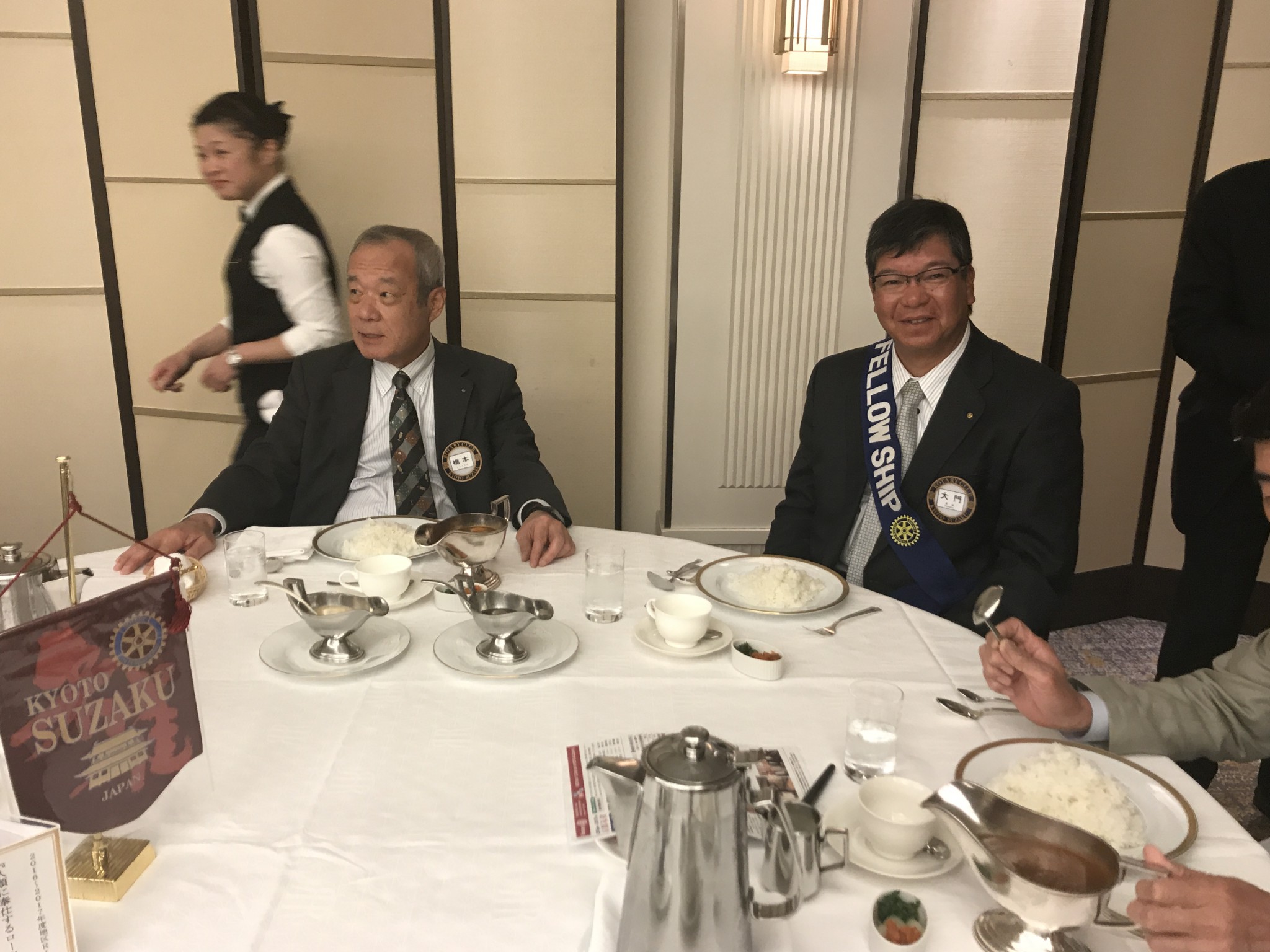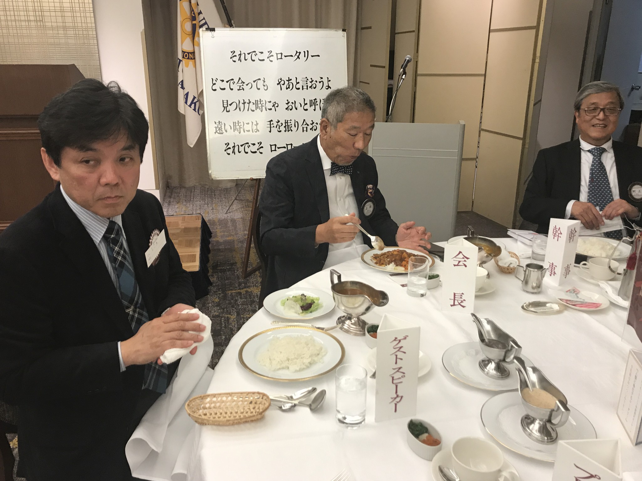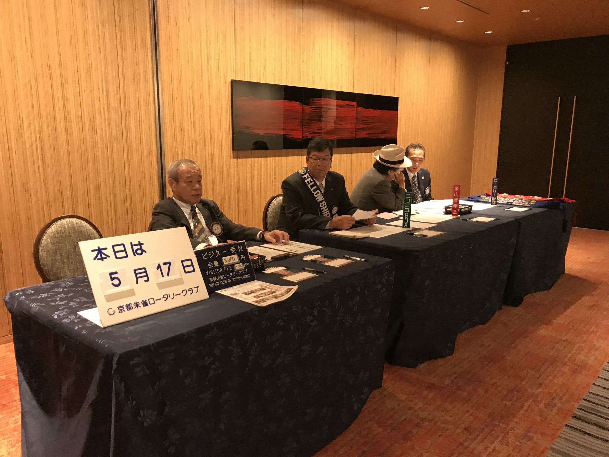 例会前、親睦委員がゲストのお迎えをしています。