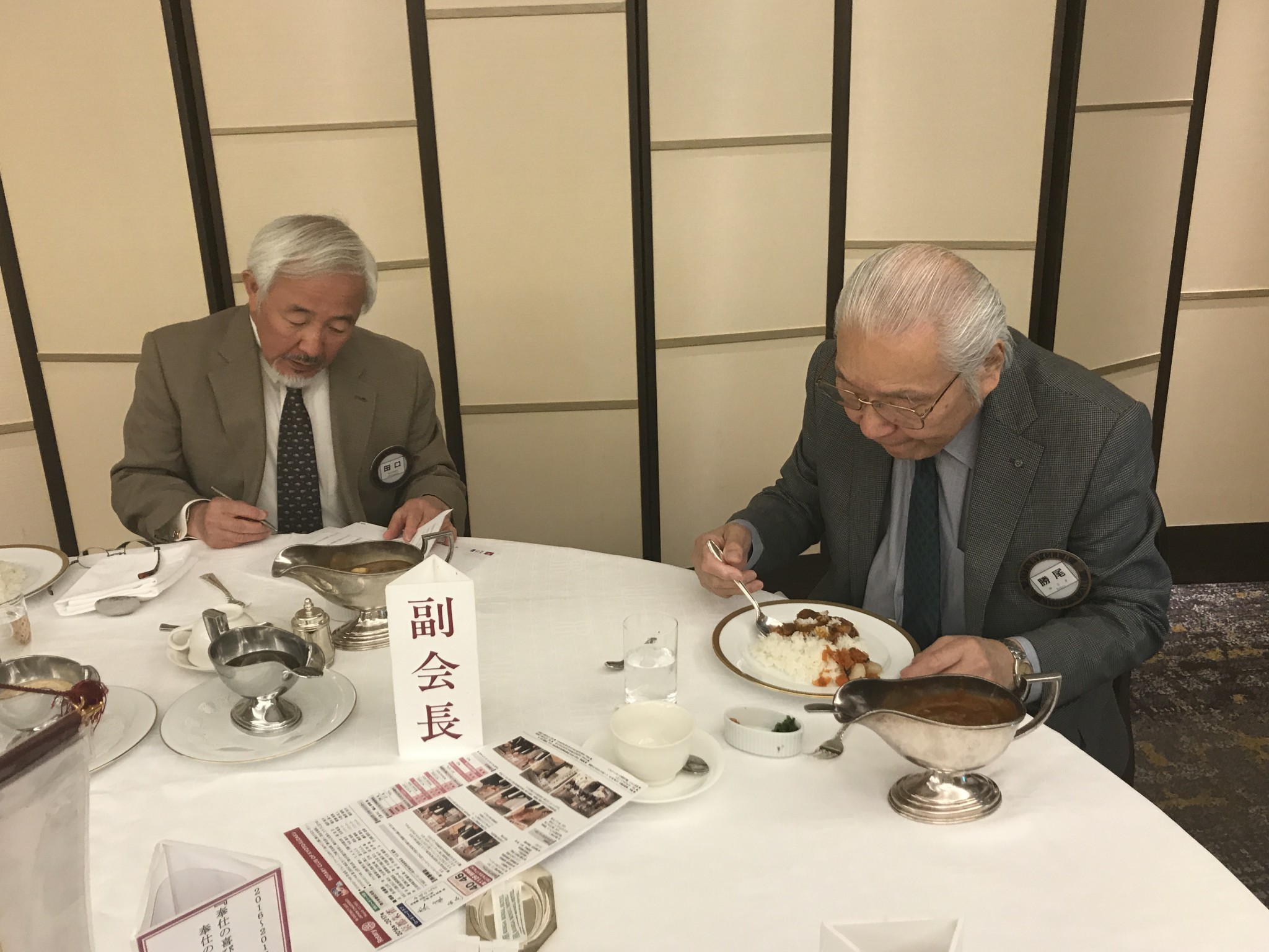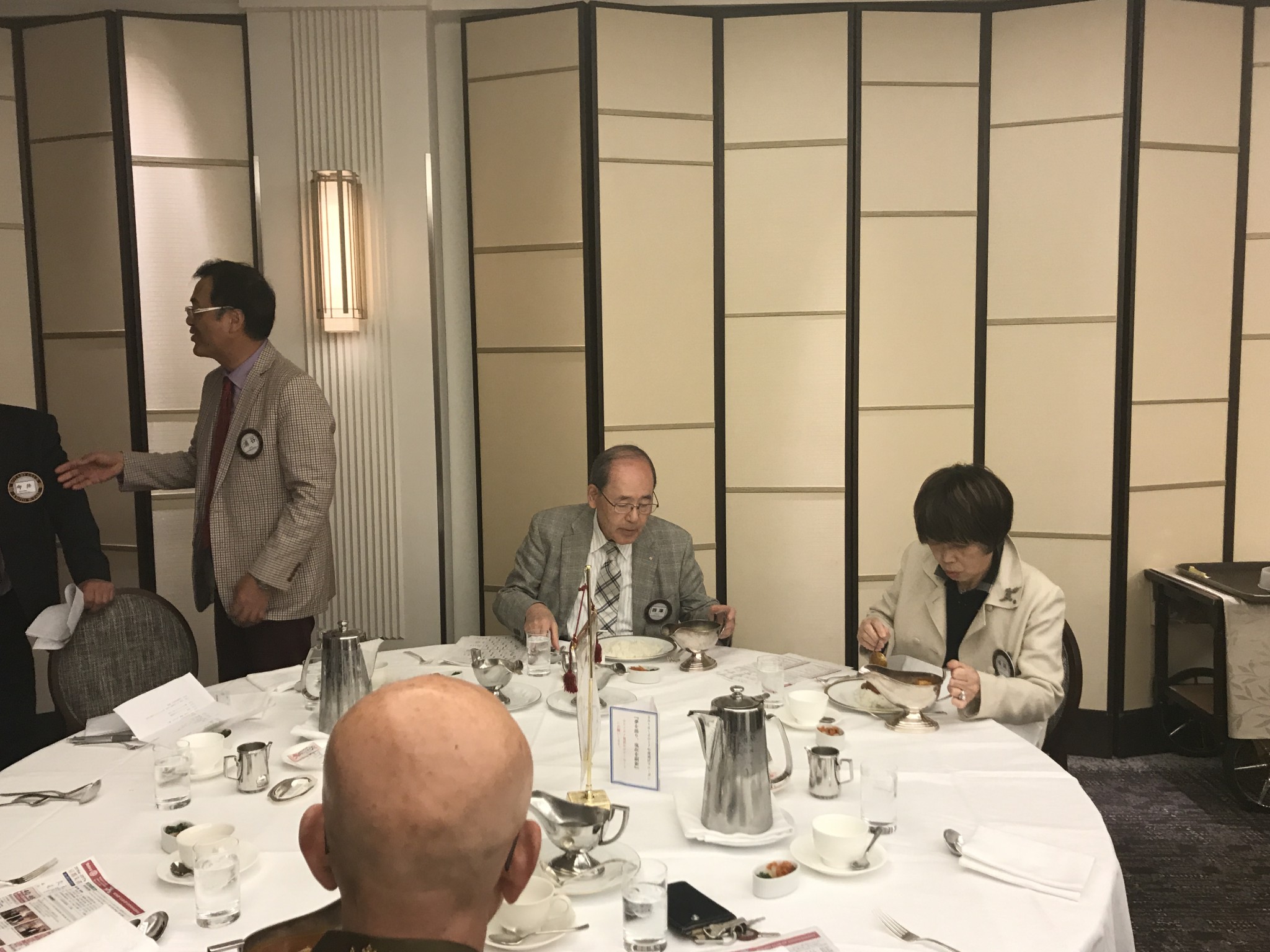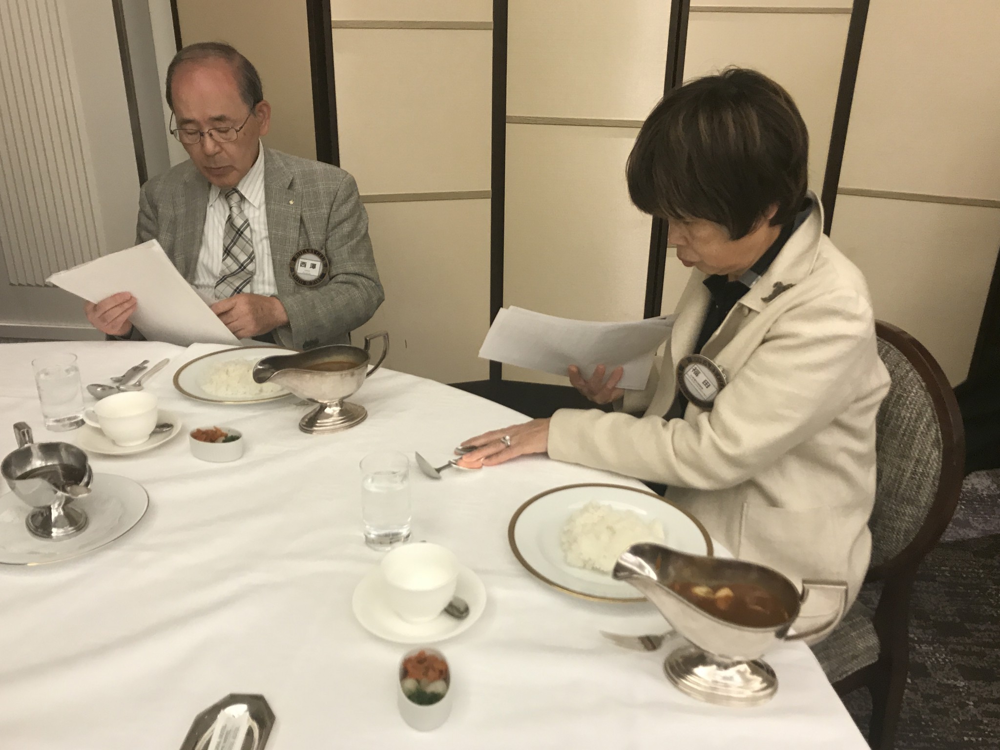 例会前、親睦委員がゲストのお迎えをしています。