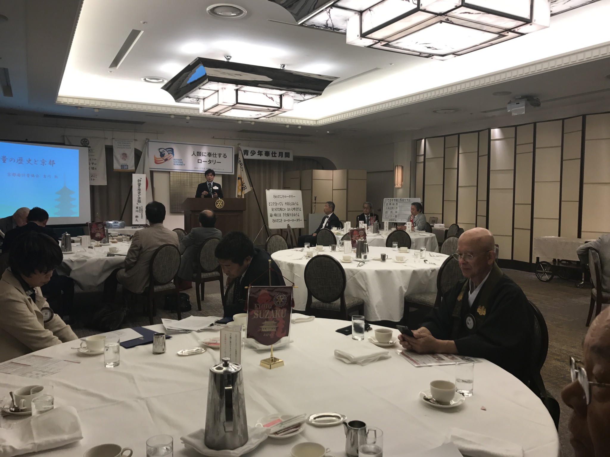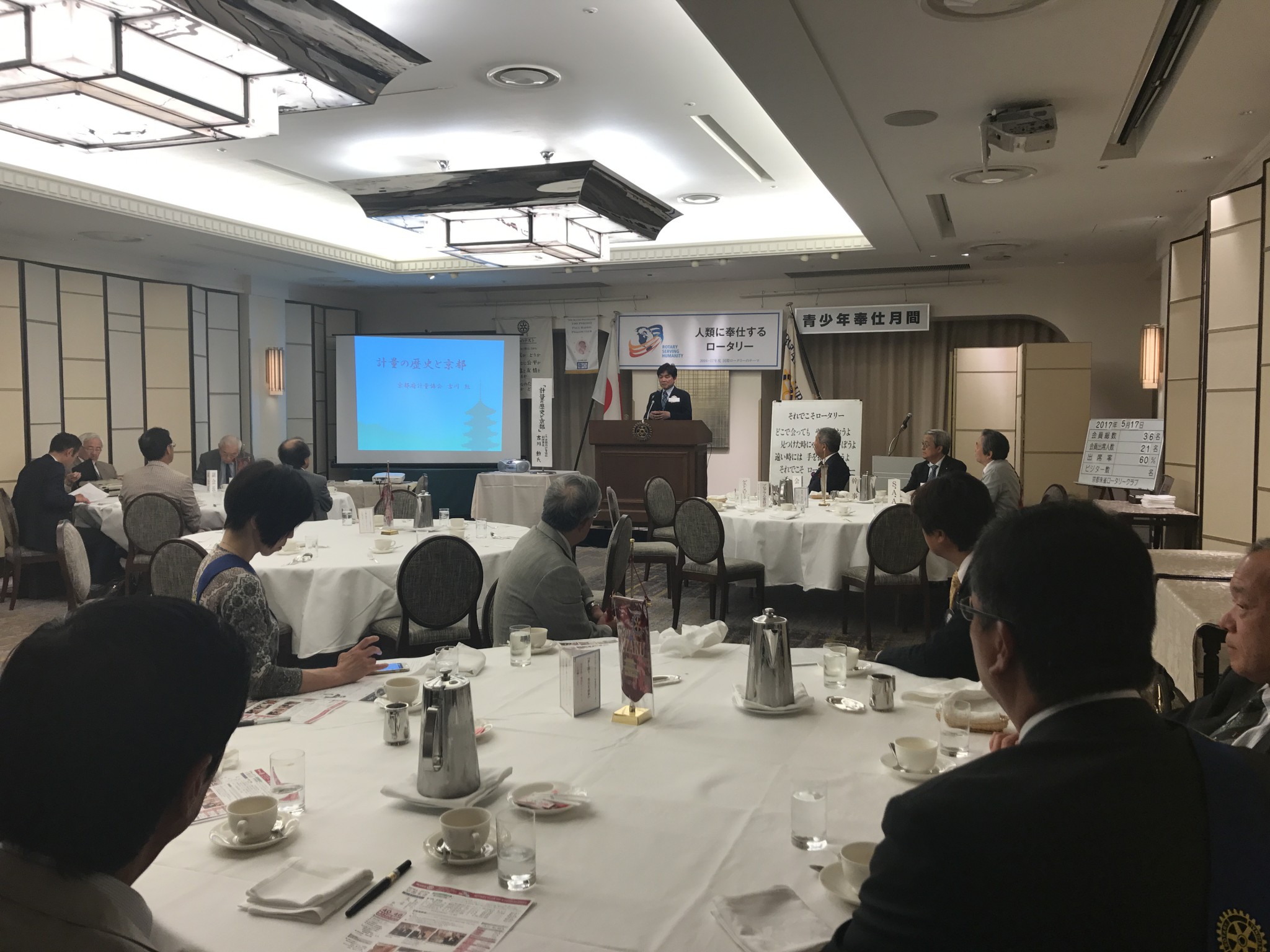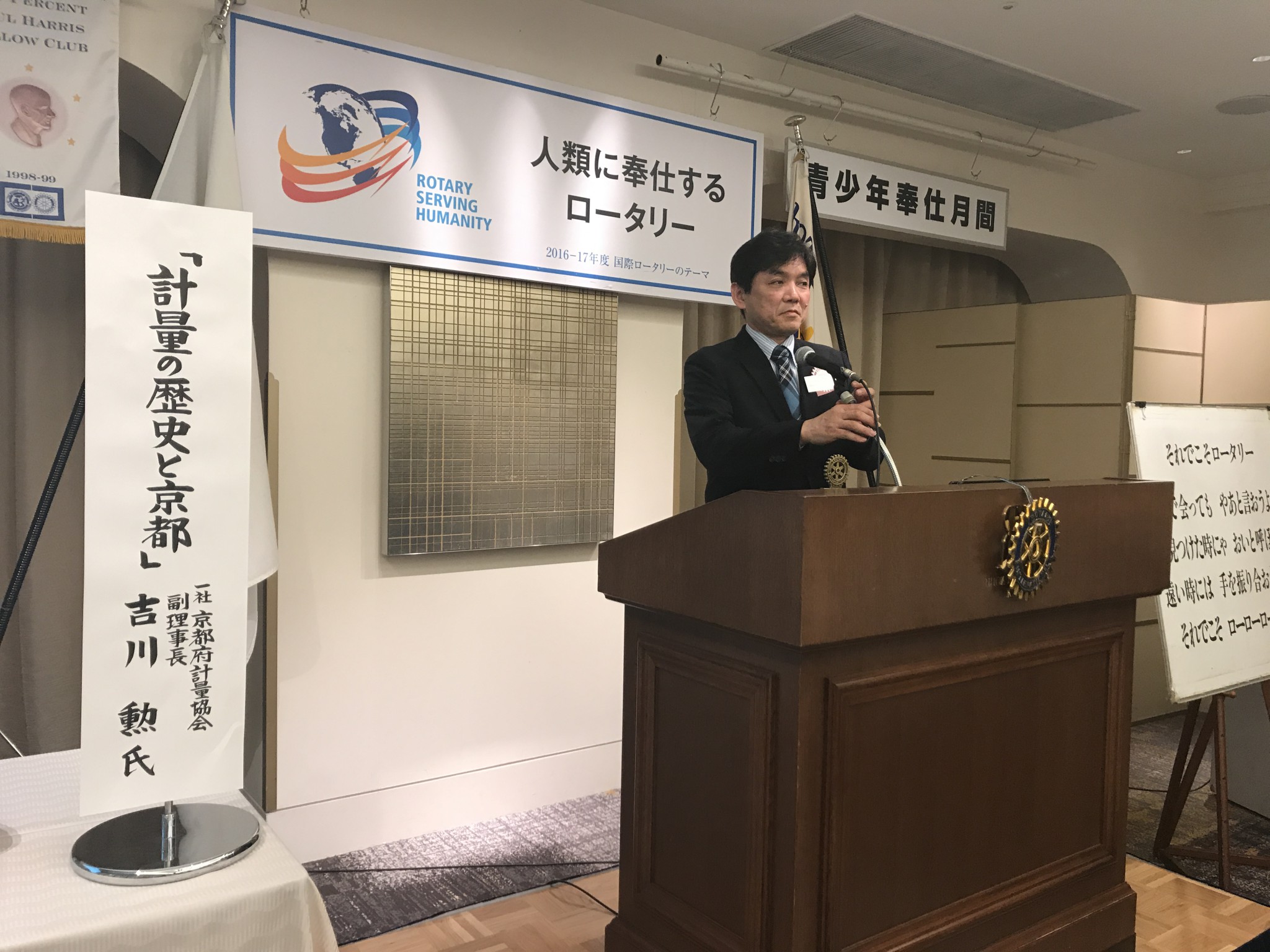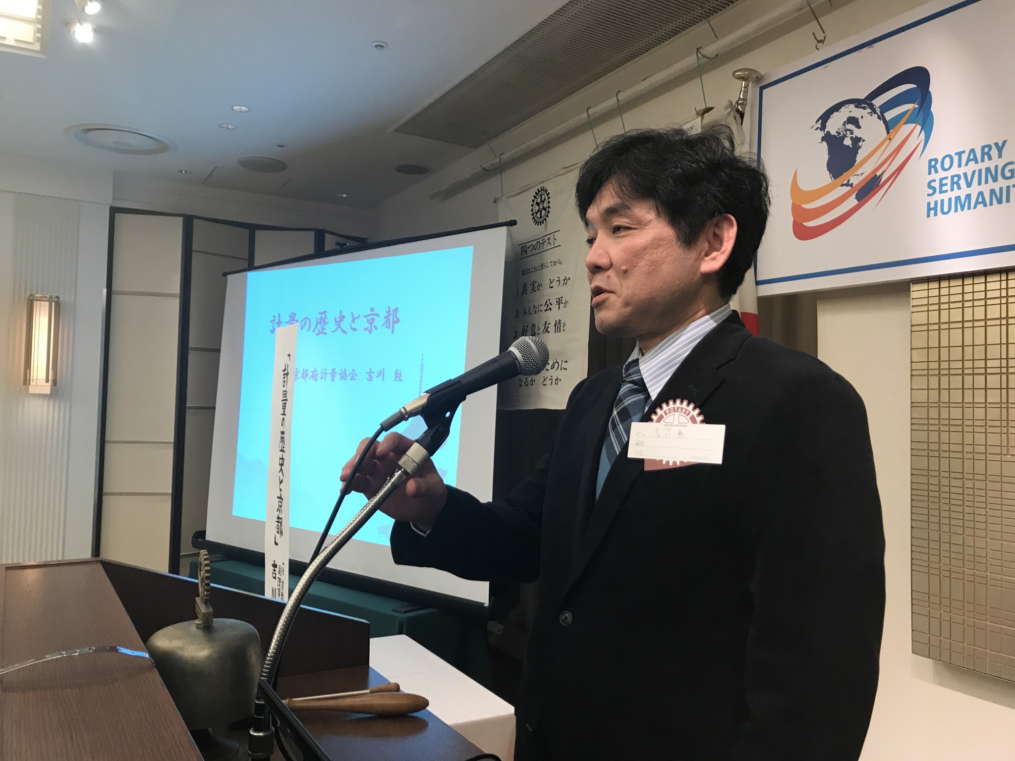 そして本日の卓話は、『計量の歴史と京都』というテーマで、京都府軽量協会副理事長・吉川勲氏にお話をいただきました。