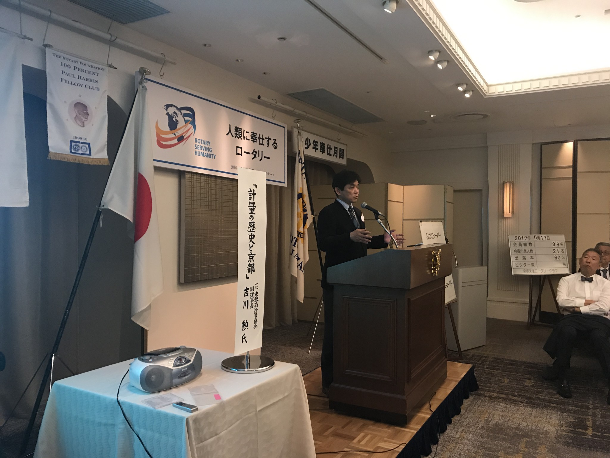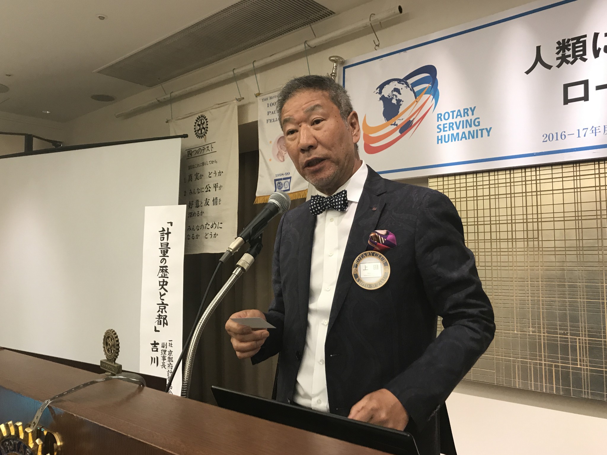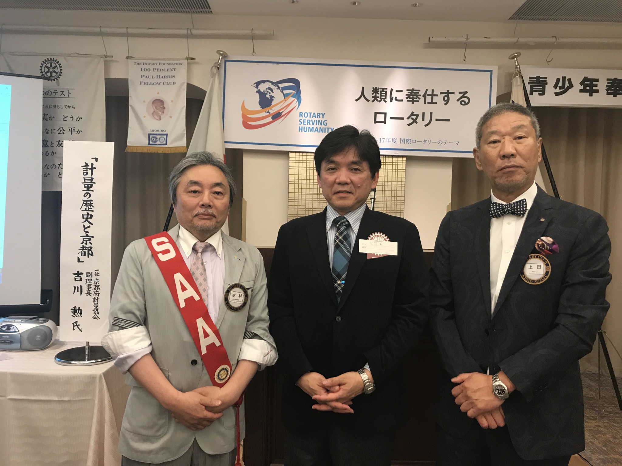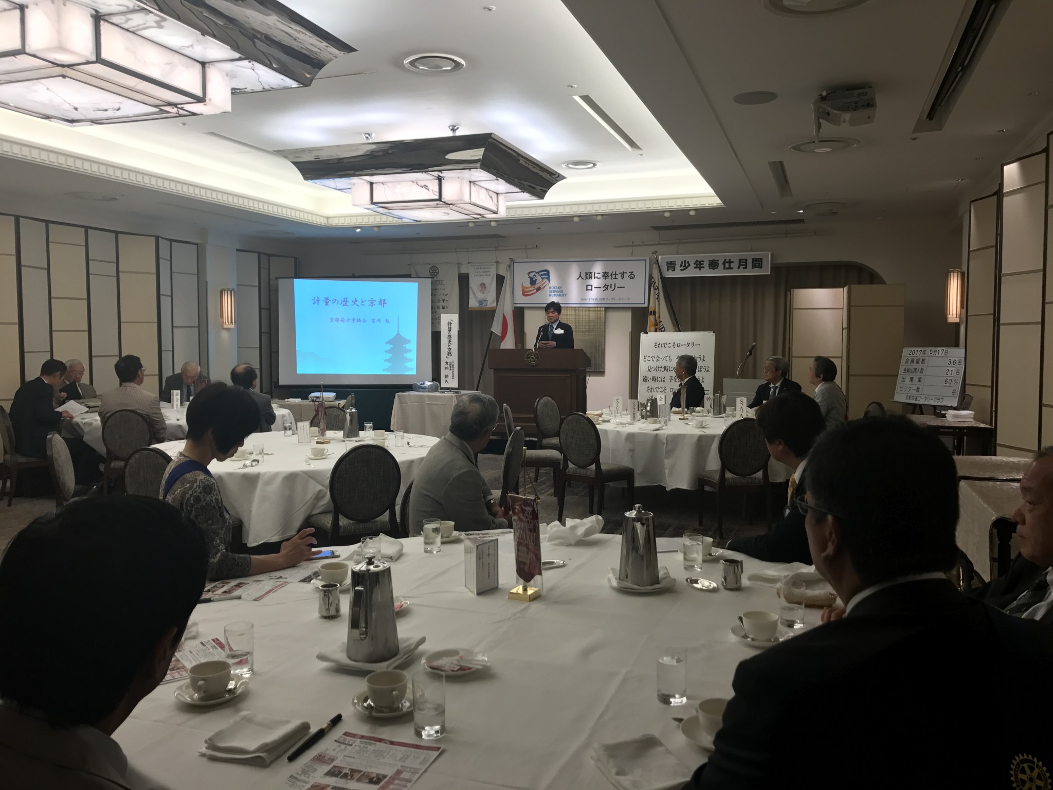 そして本日の卓話は、『計量の歴史と京都』というテーマで、京都府軽量協会副理事長・吉川勲氏にお話をいただきました。