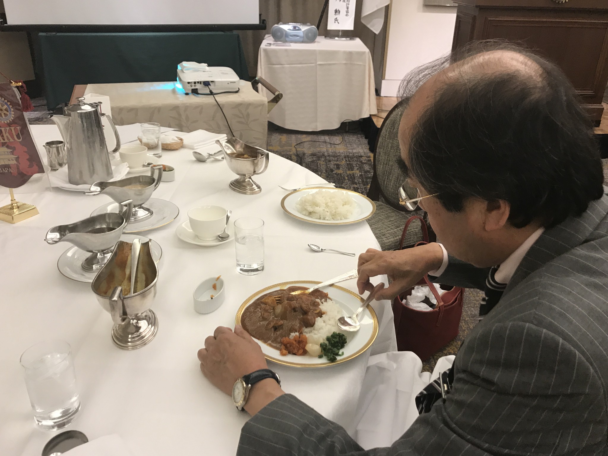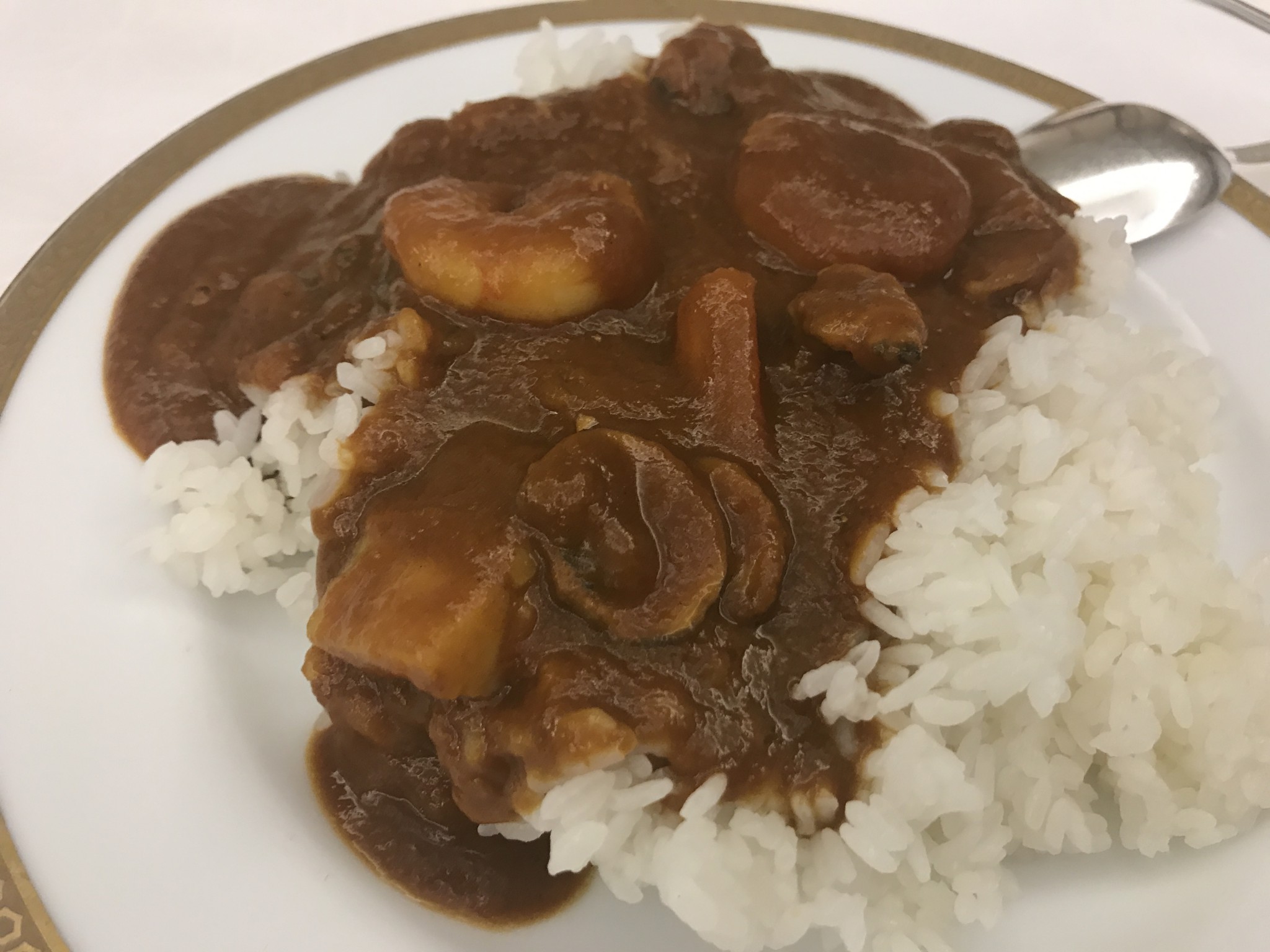 本日はクラブ・デーということで、恒例のカレーです。今回はシーフードカレーです。