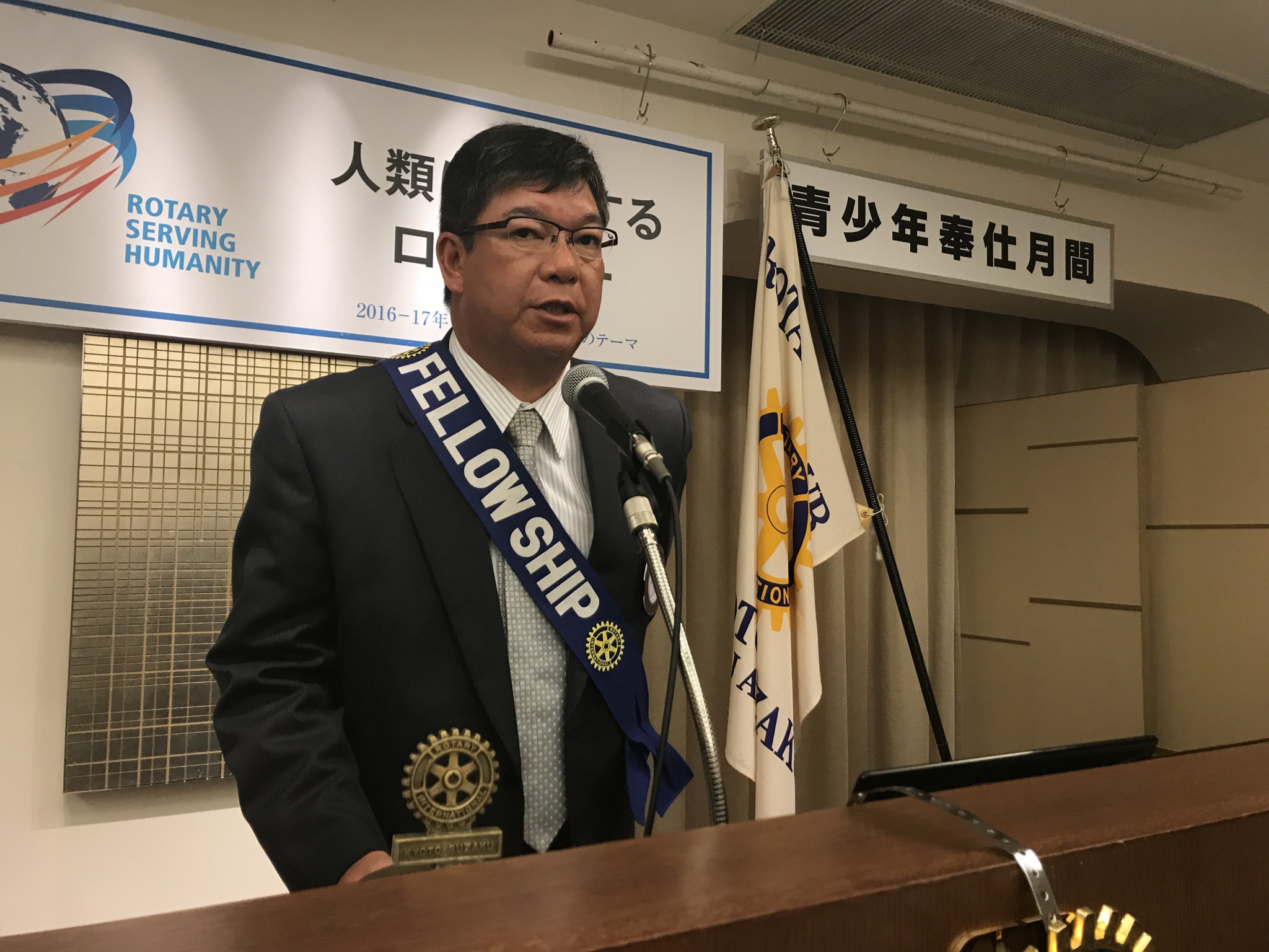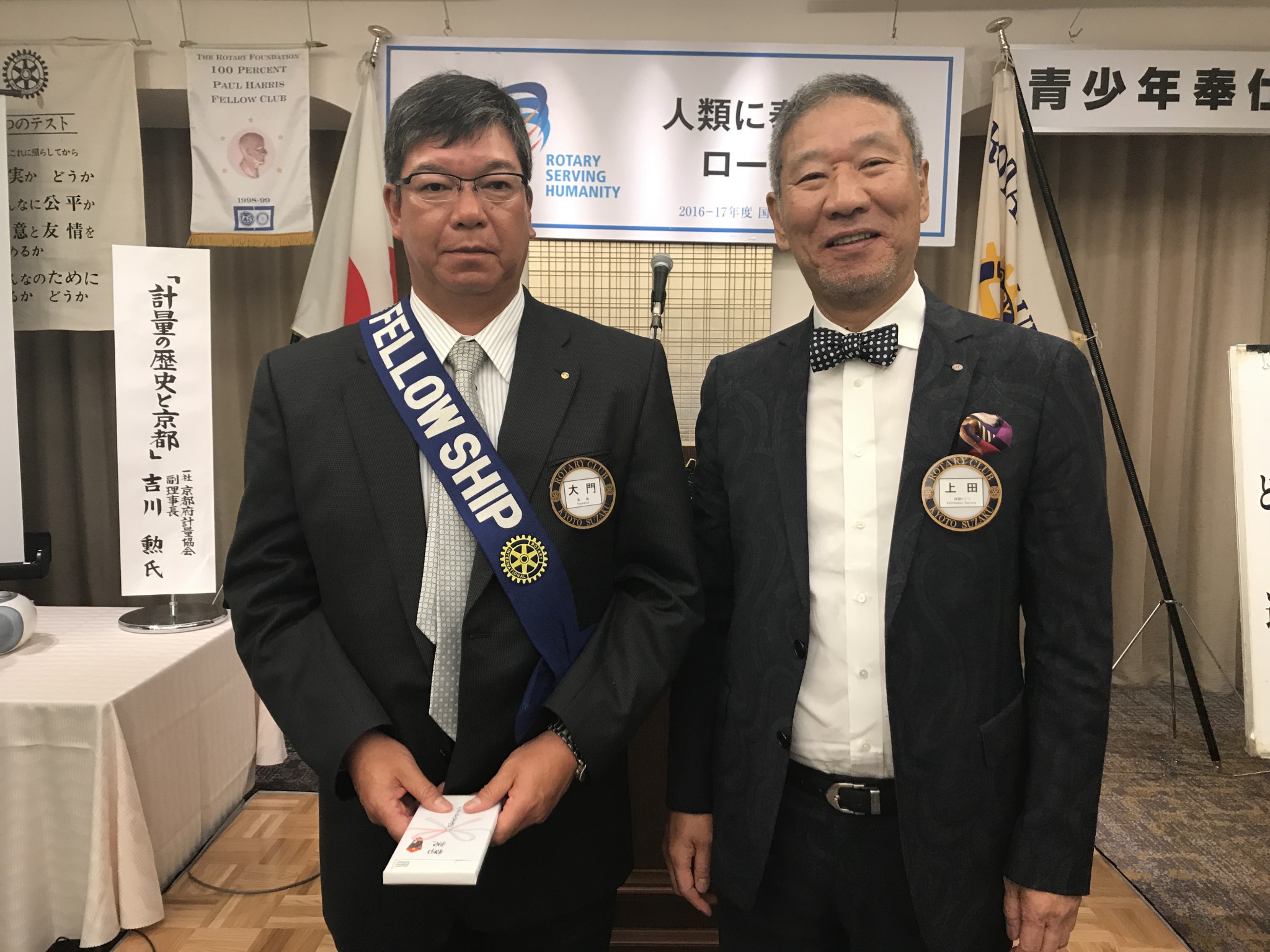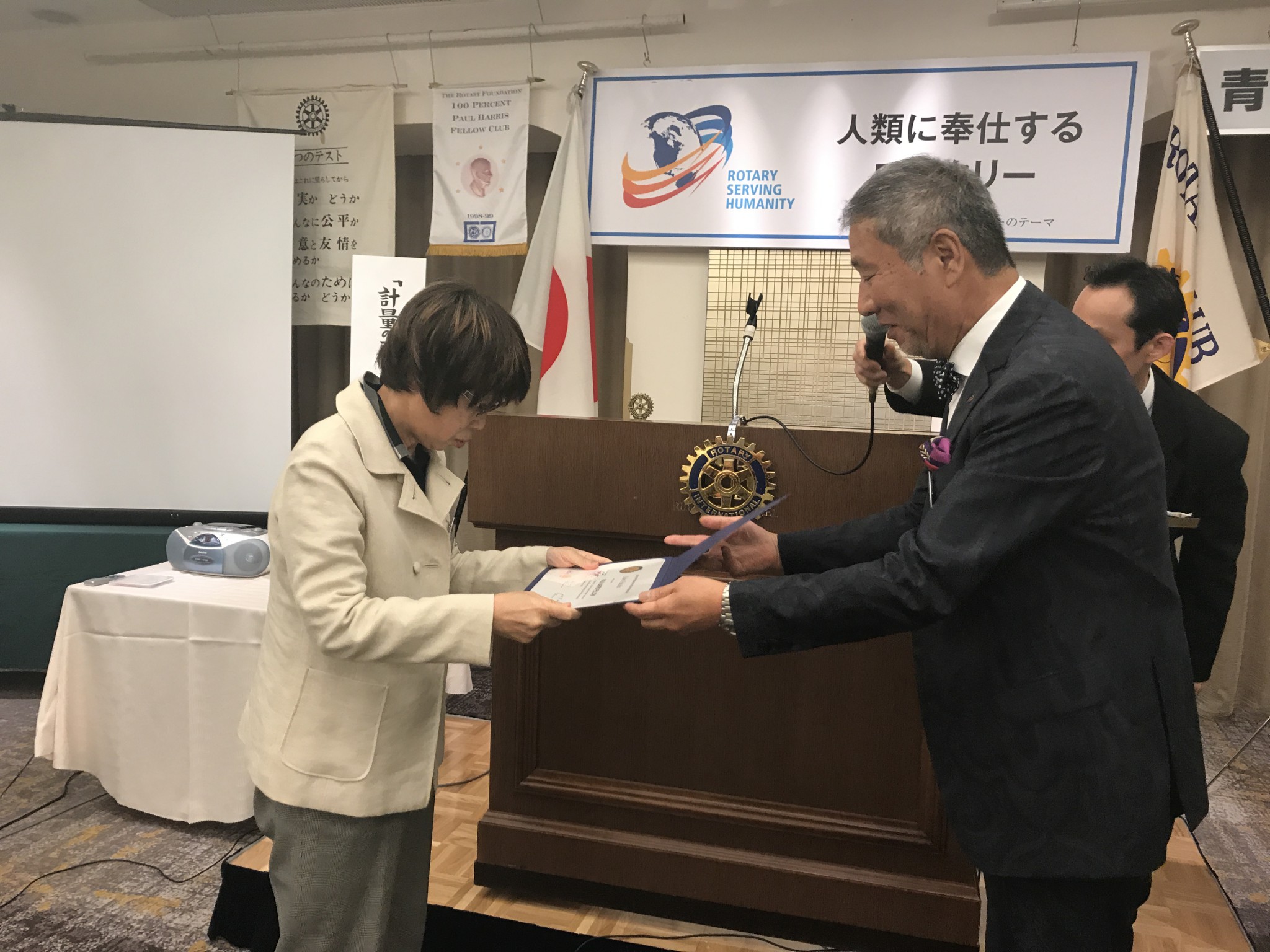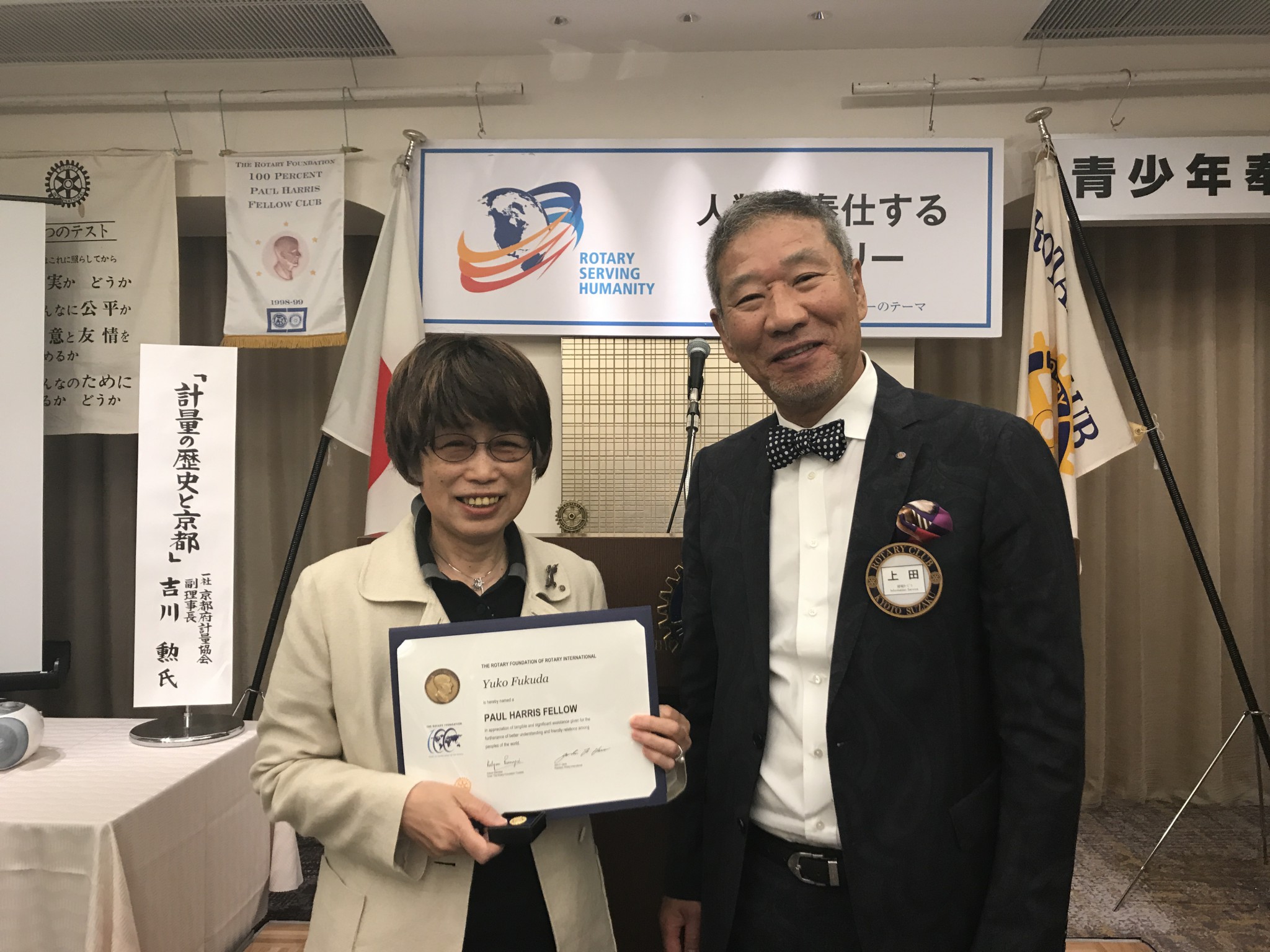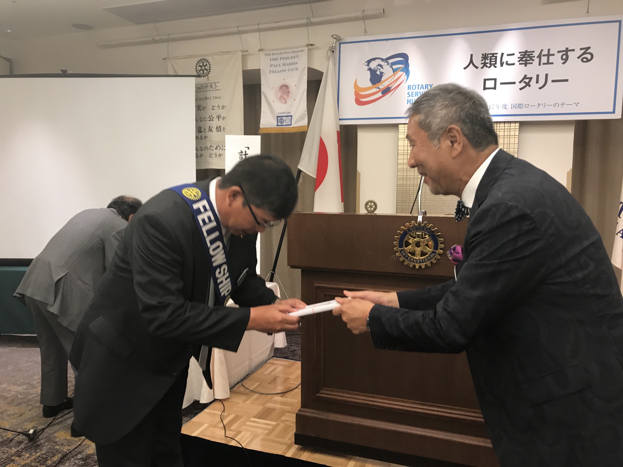 また、福田会員が「ポール・ハリス賞」を受賞されたので、上田会長より賞状とバッジの授与がおこなわれました。