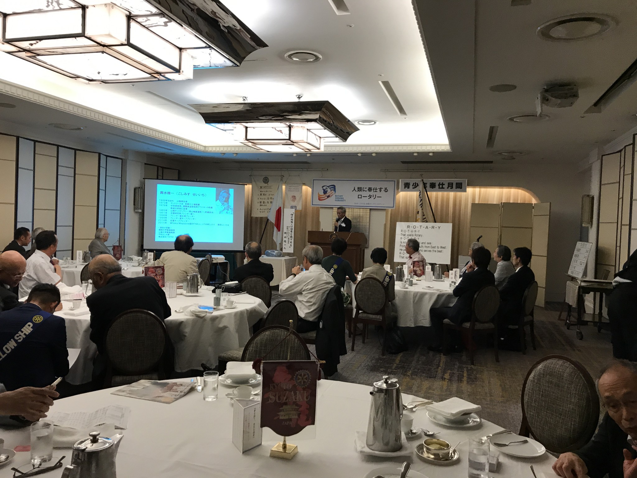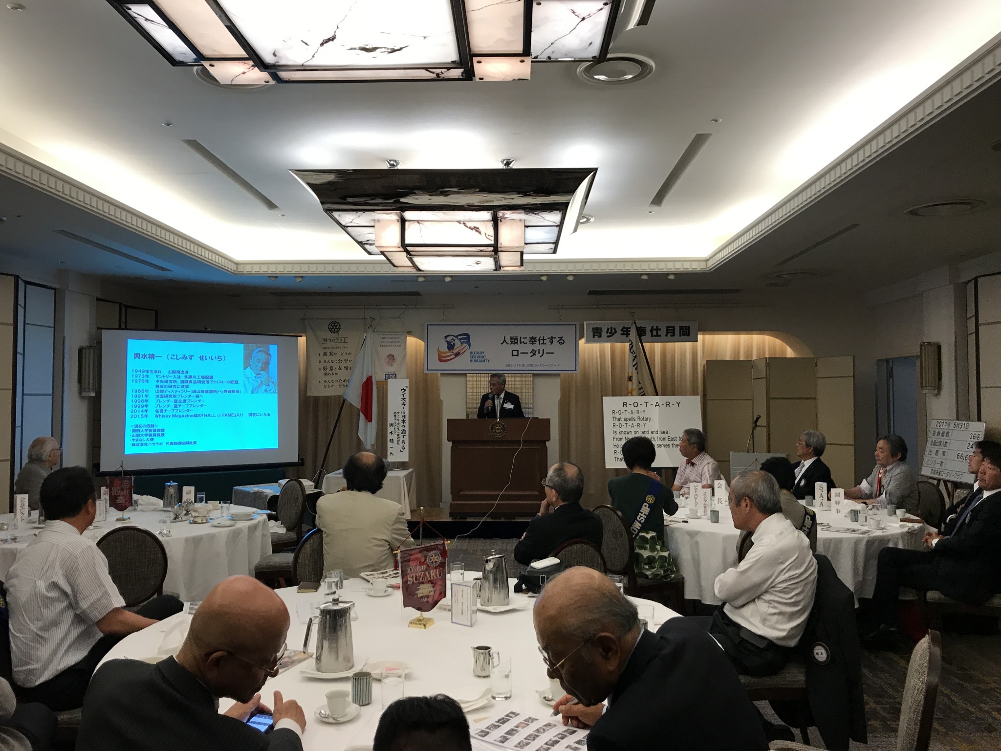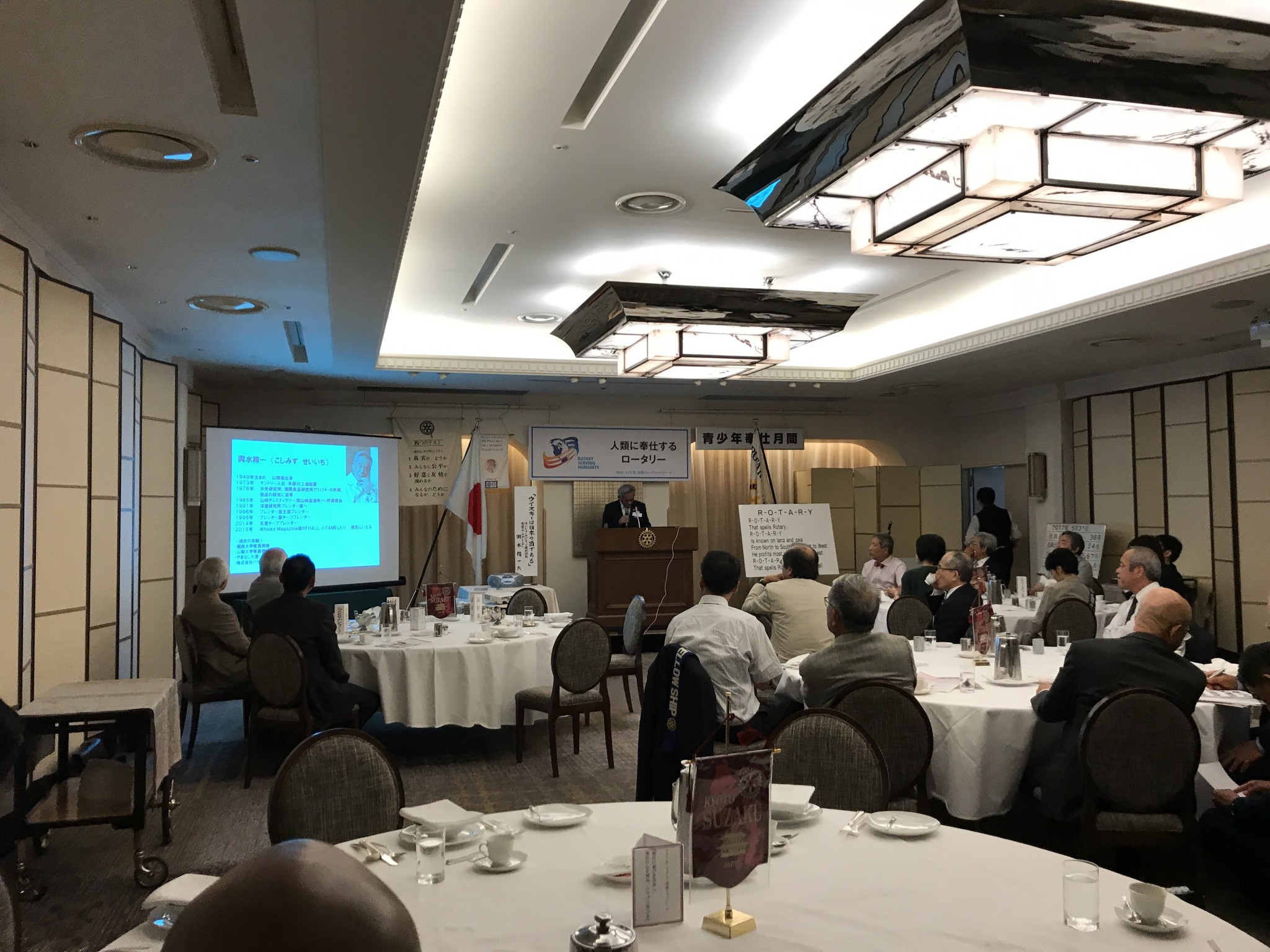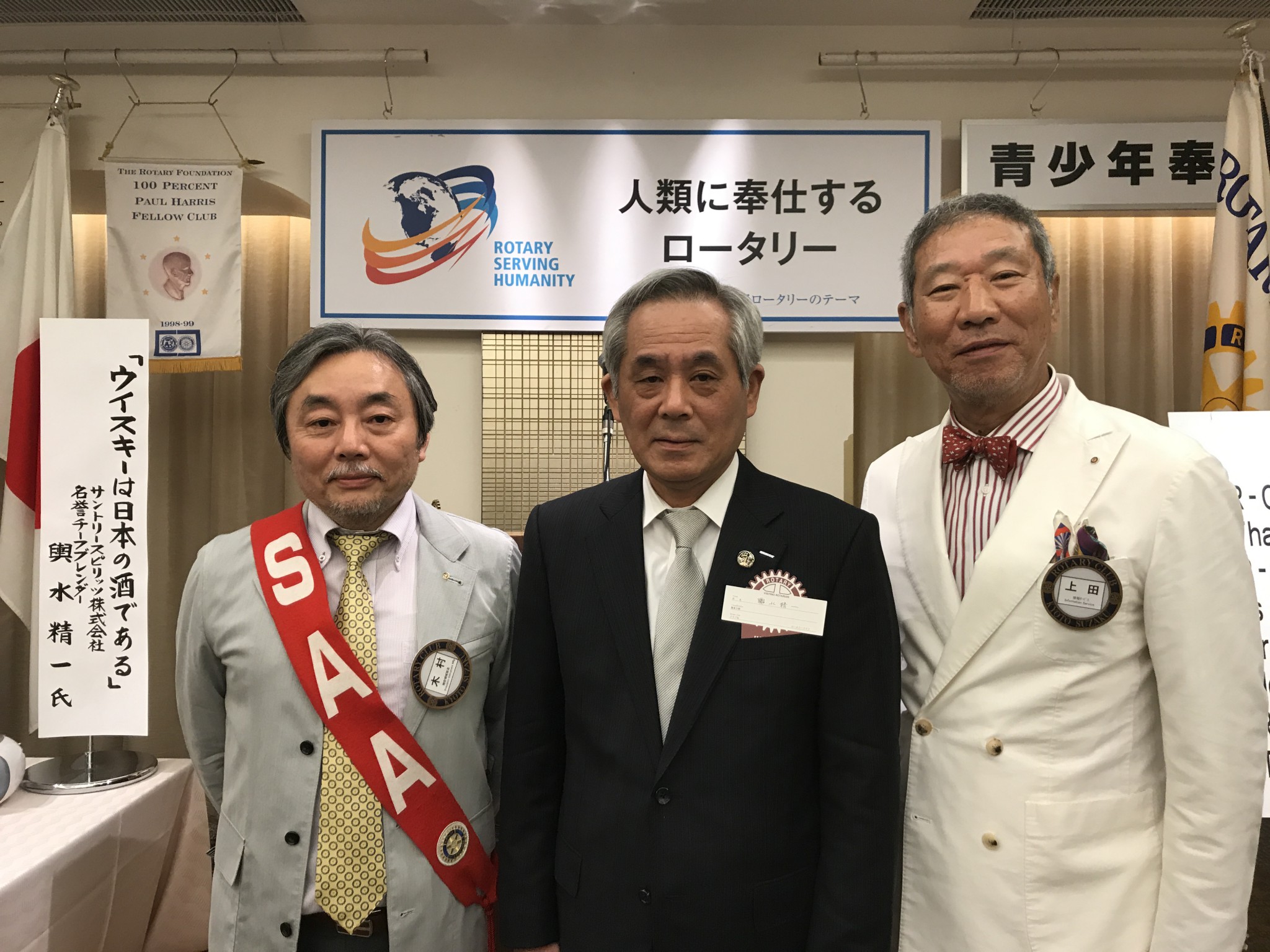 本日の卓話は、【ウイスキーは日本の酒である】というテーマで、サントリースピリッツ株式会社・名誉チーフブレンダー輿水精一氏にお話しいただきました。
