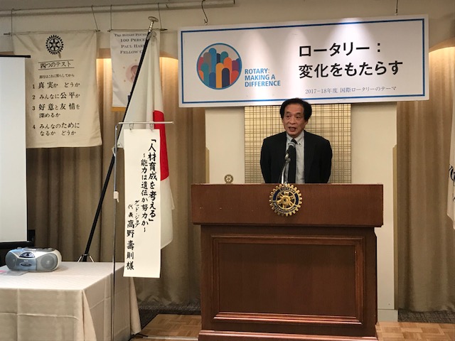 卓話:「人材育成を考える」 ~能力は遺伝か努力か~IMG_1294グッド・ジョブ 代表 高野 壽則様