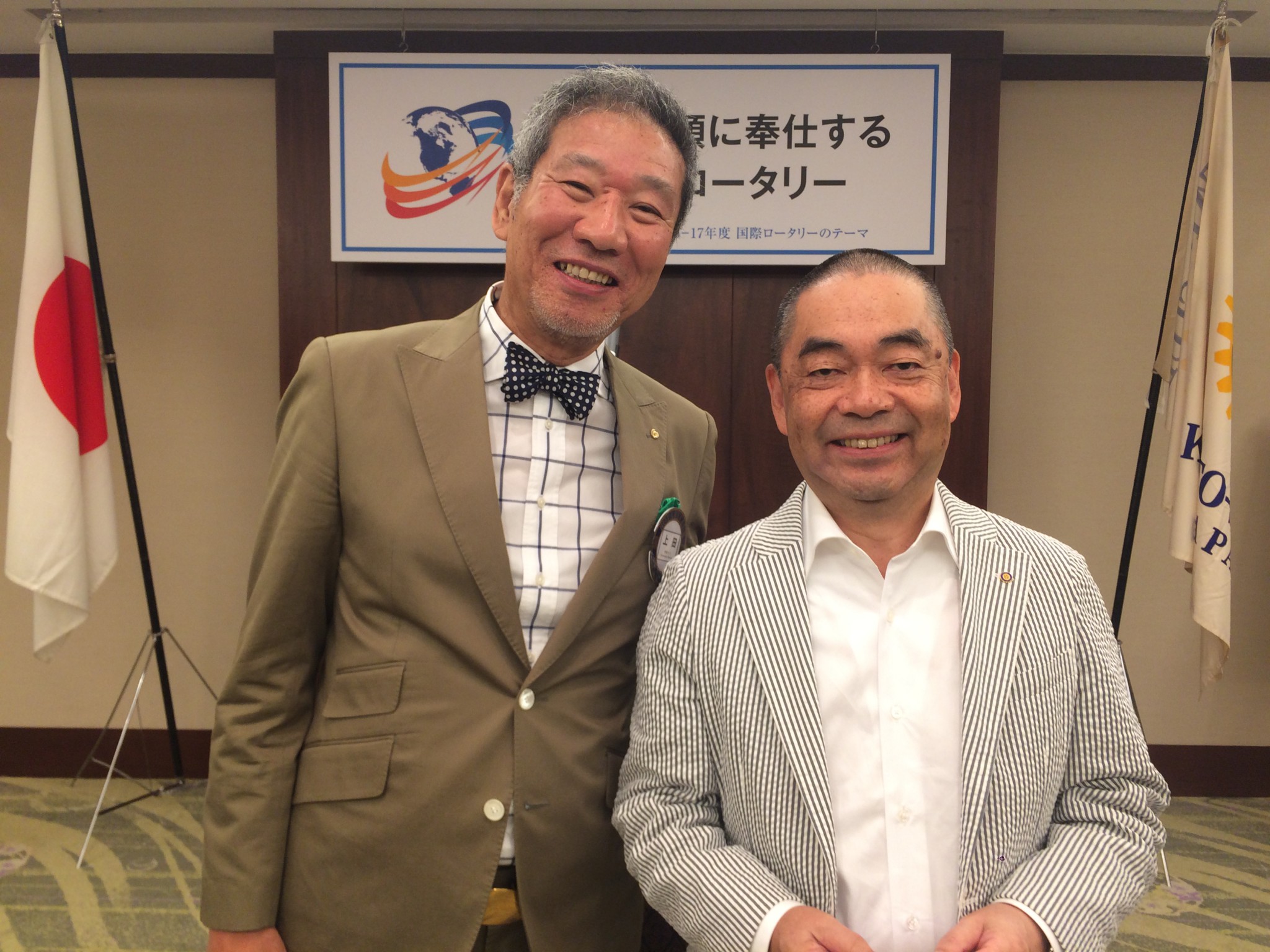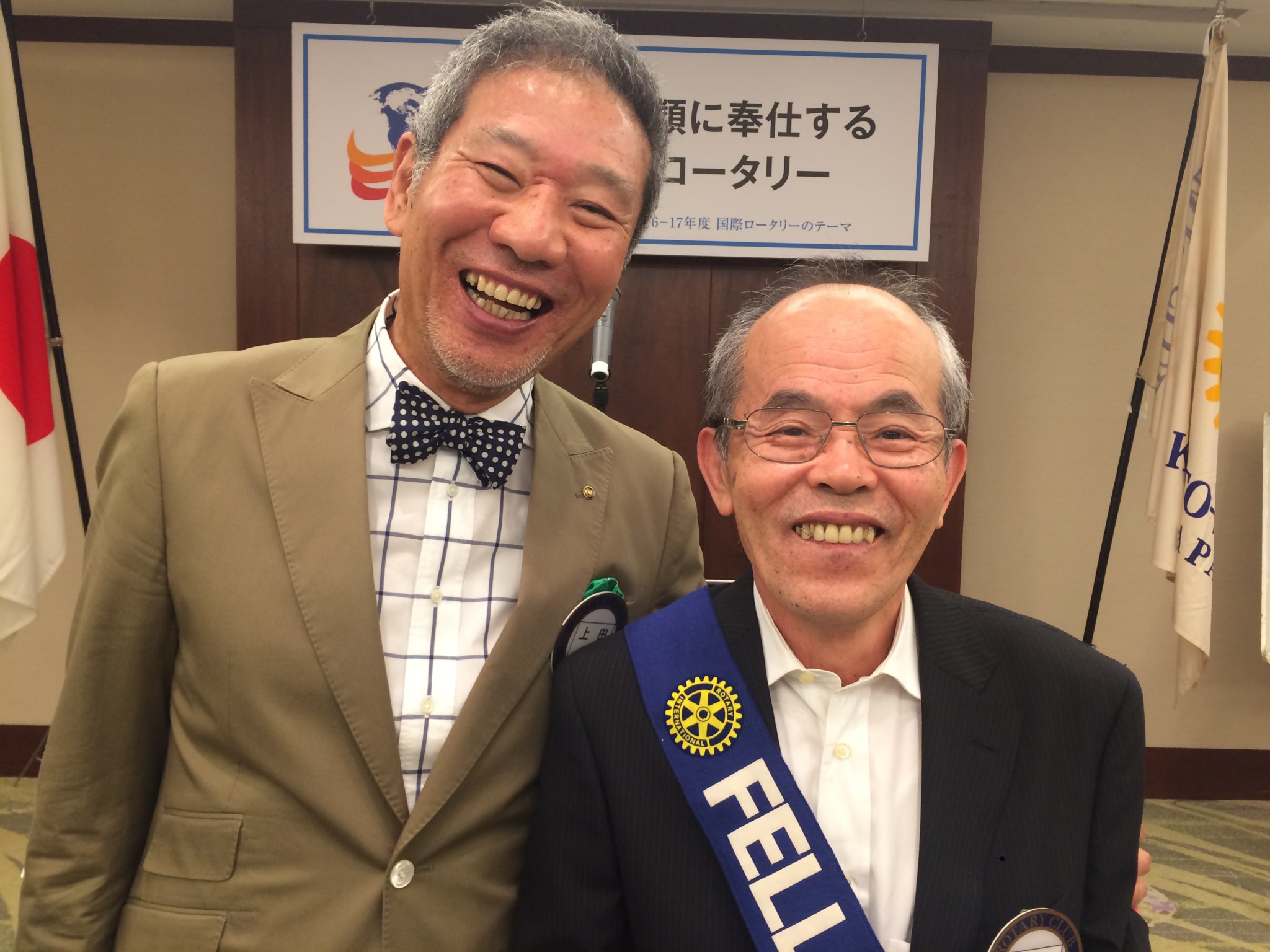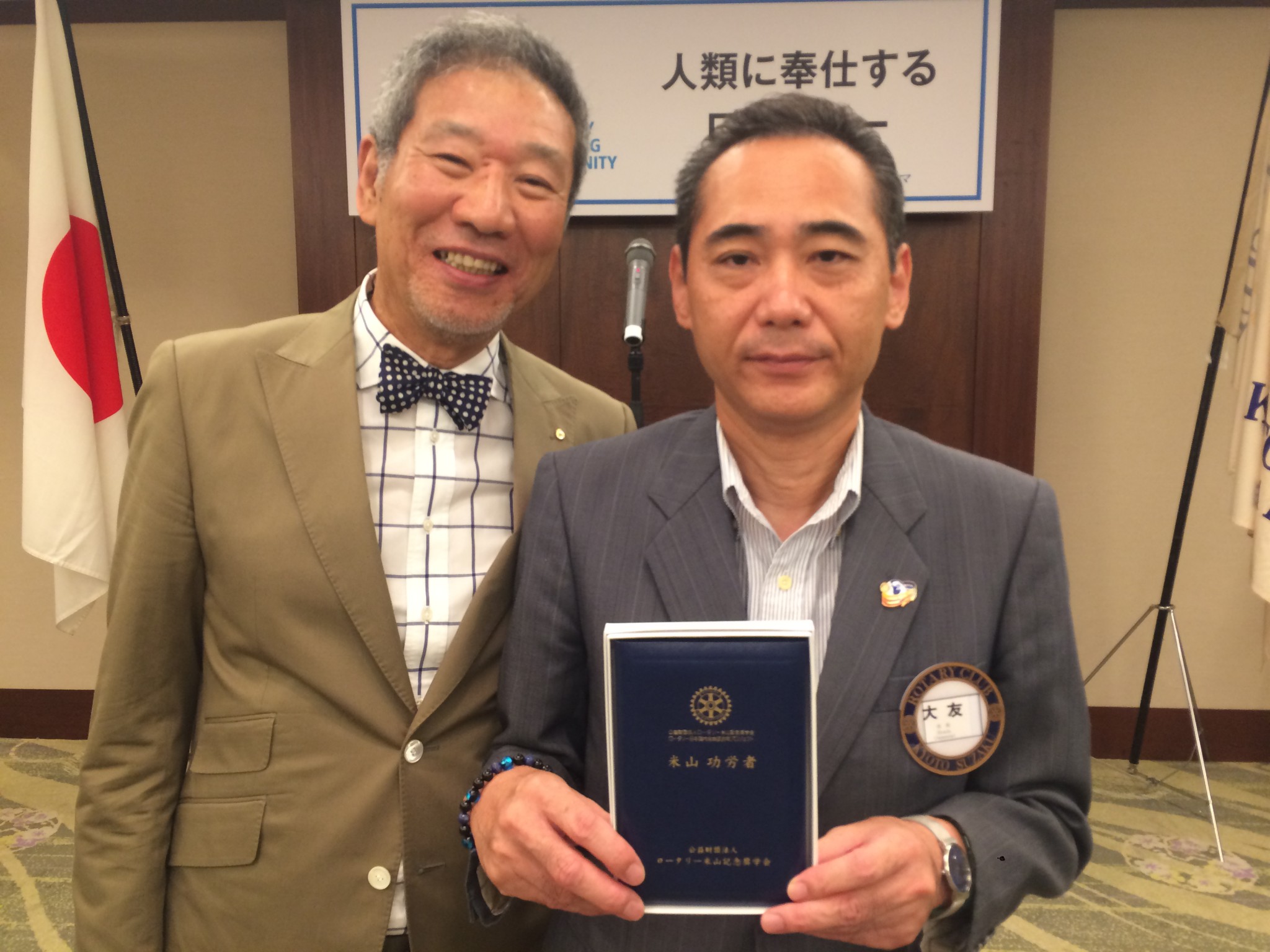 本日は野呂会員に【第1回ポールハリス・フェロー】のバッチの進呈と大友会員に【米山功労者】の盾の授与がありました。