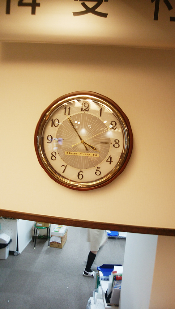活動報告ACTIVITES REPORTS 【7月19日】例会 2017.07.19 ◆卓話:「ガバナー公式訪問と事前クラブ協議会との整合性について」 国際ロータリー第2650地区 ガバナー補佐 山口 義治様 ◆久野会員の新病棟増築祝いとして掛け時計、車いすを寄贈いたしました。