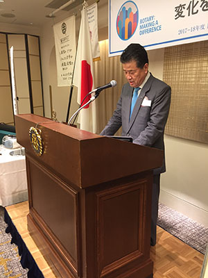 活動報告ACTIVITES REPORTS 新年度 第1回例会 就任あいさつ 2017.07.5 田口会長 就任挨拶 京都南ロータリークラブ 副会長 松田 令様 表敬訪問 岡山北西ロータリークラブ 会長 大饗 よし江様 表敬訪問 新年集合写真