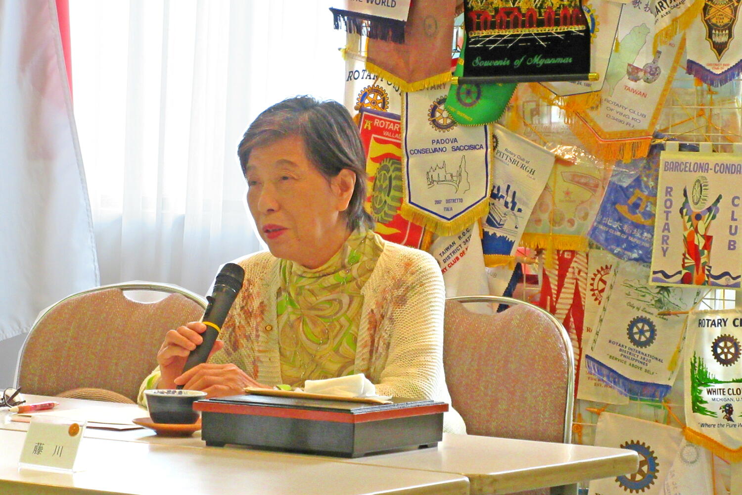 2024年11月6日の卓話は、藤川正代会員が新入会員スピーチを行いました。会員は内科医として活躍されており、長年にわたり地域の学校で学校医を務めるとともに、企業の産業医としても多くの経験を積まれています。