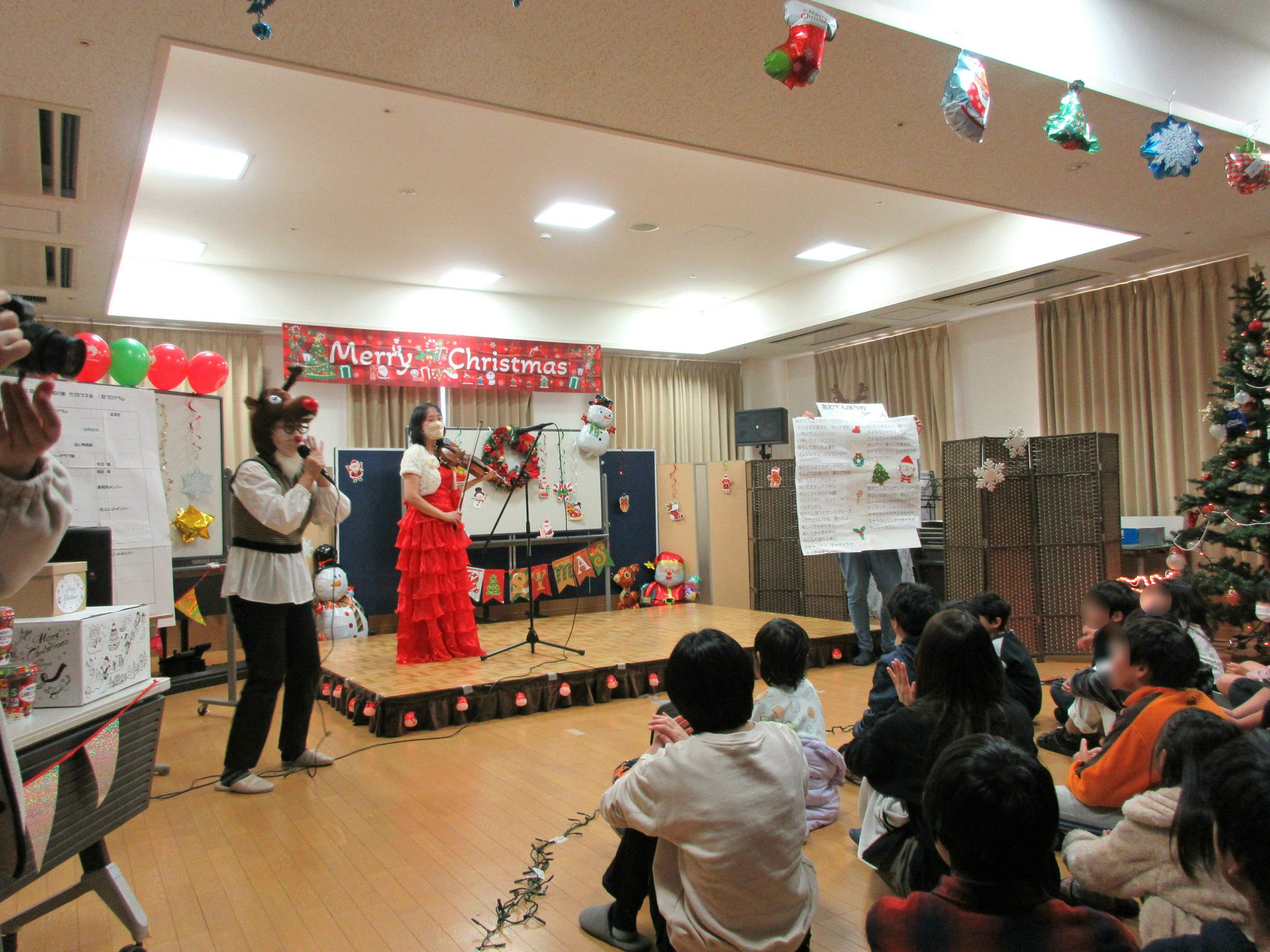 2023年12月23日(土)14時30分から16時30分で、入所児童、職員、クラブ会員 計140名が参加して行いました。