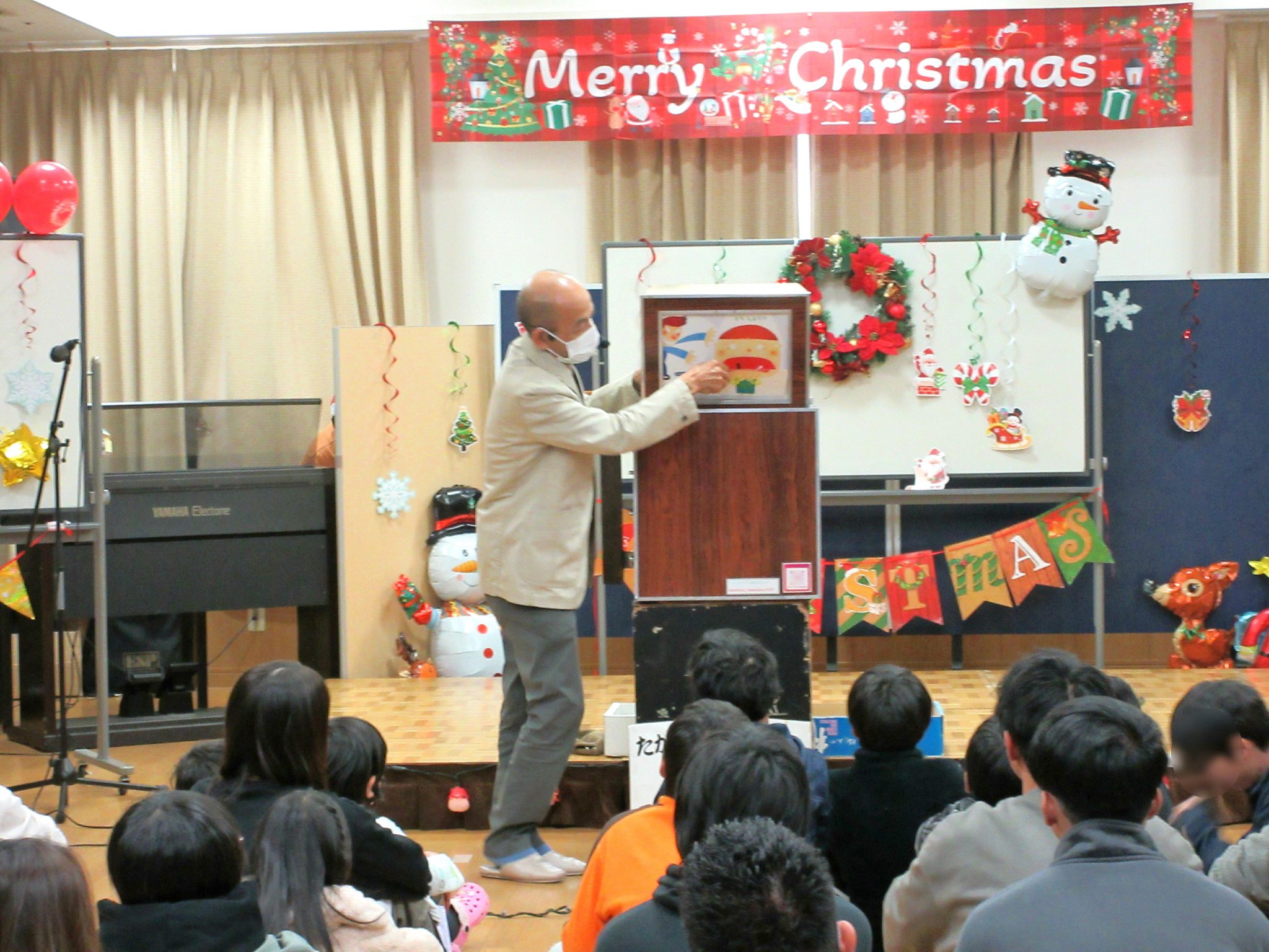 クラブからは、バイオリン演奏と紙芝居を発表し、クリスマスソングを歌い、楽しく交流しました。また、子どもたちからはエアー演奏や映像発表等の出し物の発表があり、とても充実した楽しい午後になりました。その写真の一部です。
