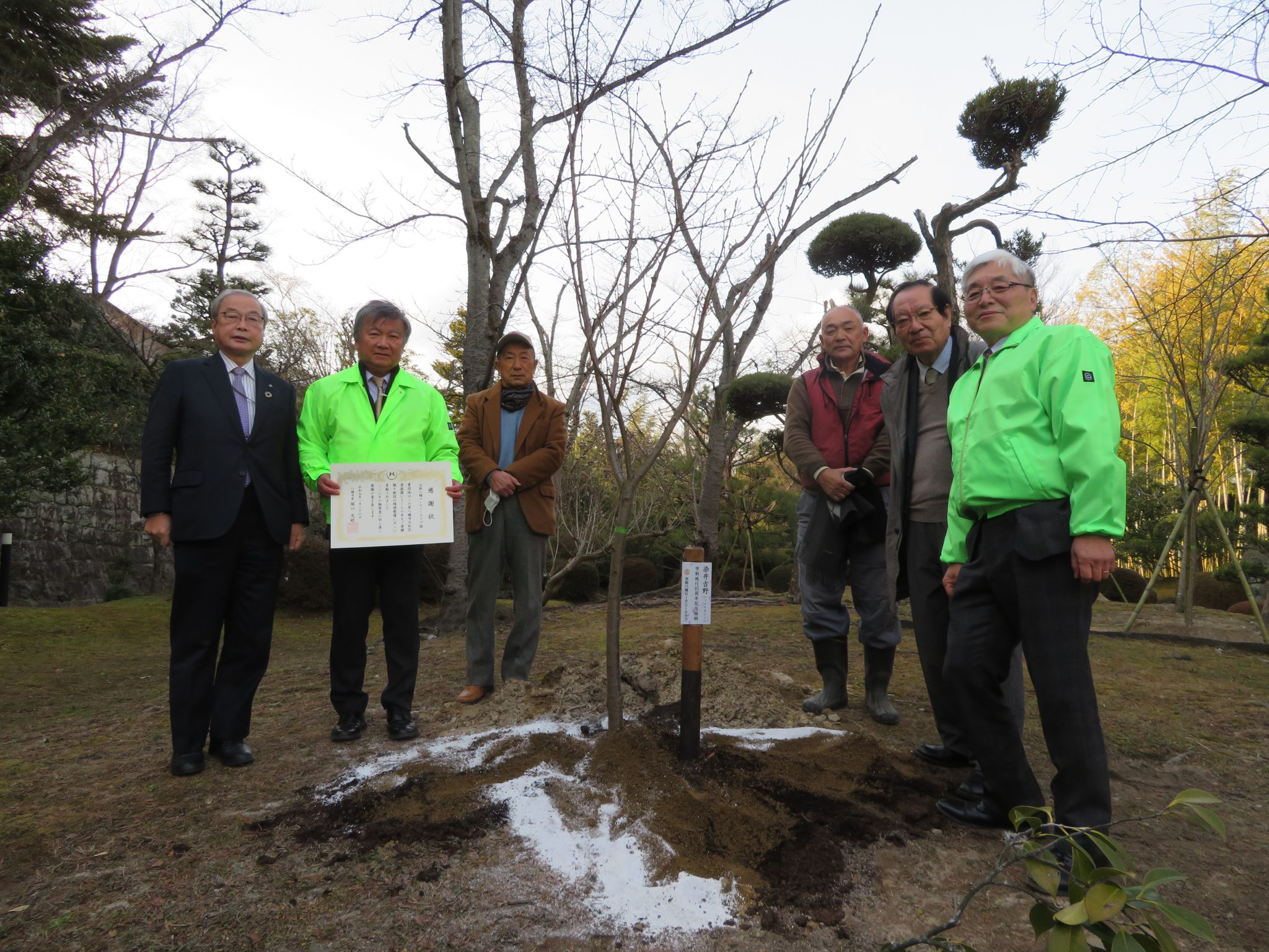 活動報告ACTIVITES REPORTS 1月26日(木)45周年記念植樹・松花堂庭園に染井吉野を植樹 2023.02.15 1月26日(木)に八幡市松花堂庭園に染井吉野を6本植樹させて頂きました。 当日は堀口文昭八幡市長から感謝状が授与されました。