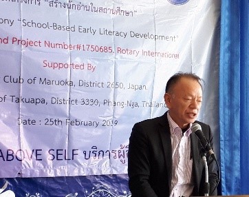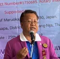 東角会員が祝辞の最後に言った言葉「教育は1日にしてならず」がタクアパRCメンバーには理解できなかったらしく、日本との交流が深いウイチャイ氏が意味を説明している光景があり、滞りなく終えようとしているGG事業への安堵感をなぜか強く感じました。 (文責 杉本政昭)