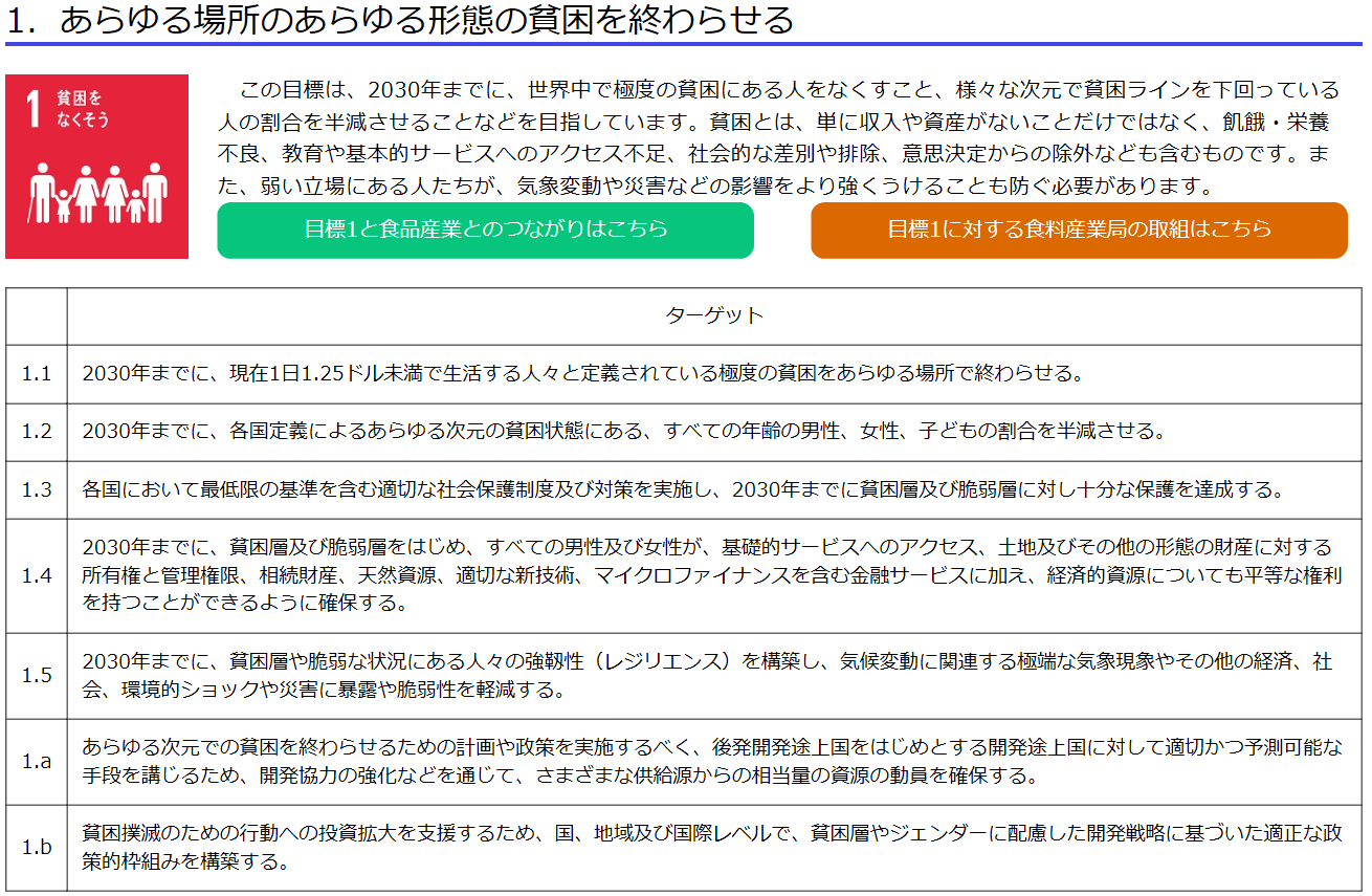 どうでしょうか、「①貧困をなくそう」に対して100%カバーできている内容でしょうか。