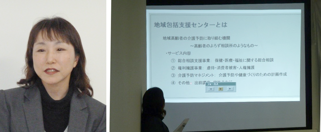 丸岡包括支援センター長 山道 伊久江様に『地域包括支援センターの役割』についてお話いただきました。