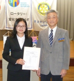 11月6日(月)の例会では米山奨学生の王丽琴さんに卓話をしていただきました。
