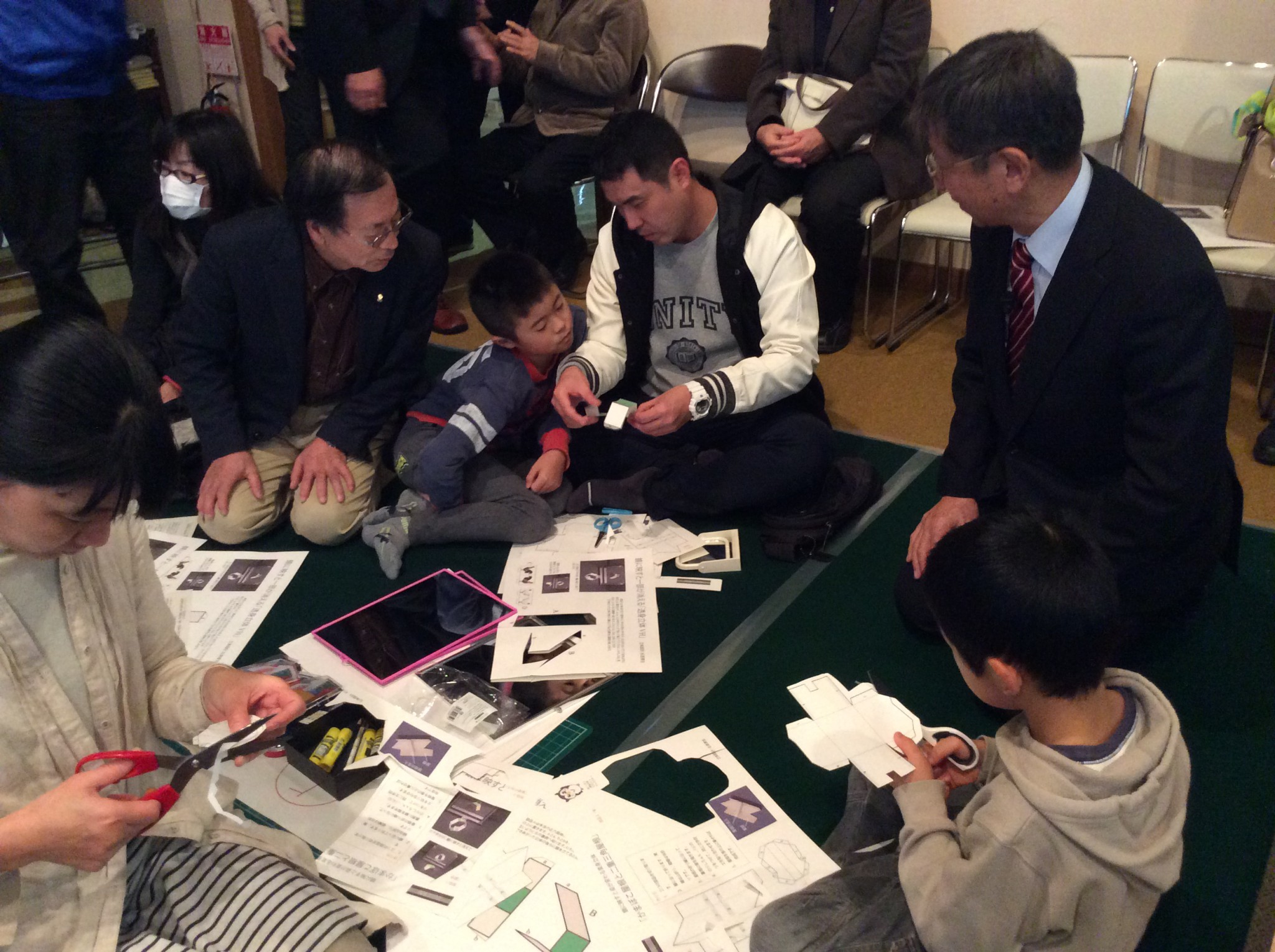 12月11日(日) みくに龍翔館におきまして坂井市内の小学生25組親子が錯覚学習体験工作を行いました。