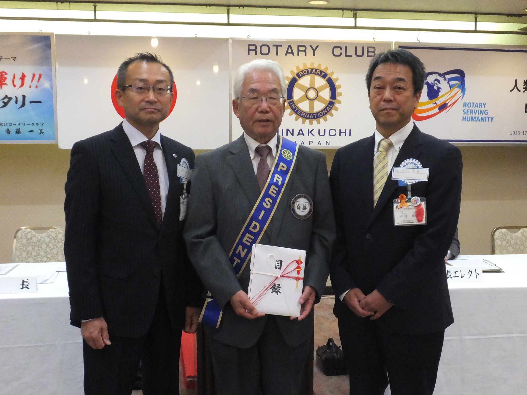 水口ロータリークラブは第2700回例会を記念して今年も市内6つの中学校へ図書カードを贈呈致しました。