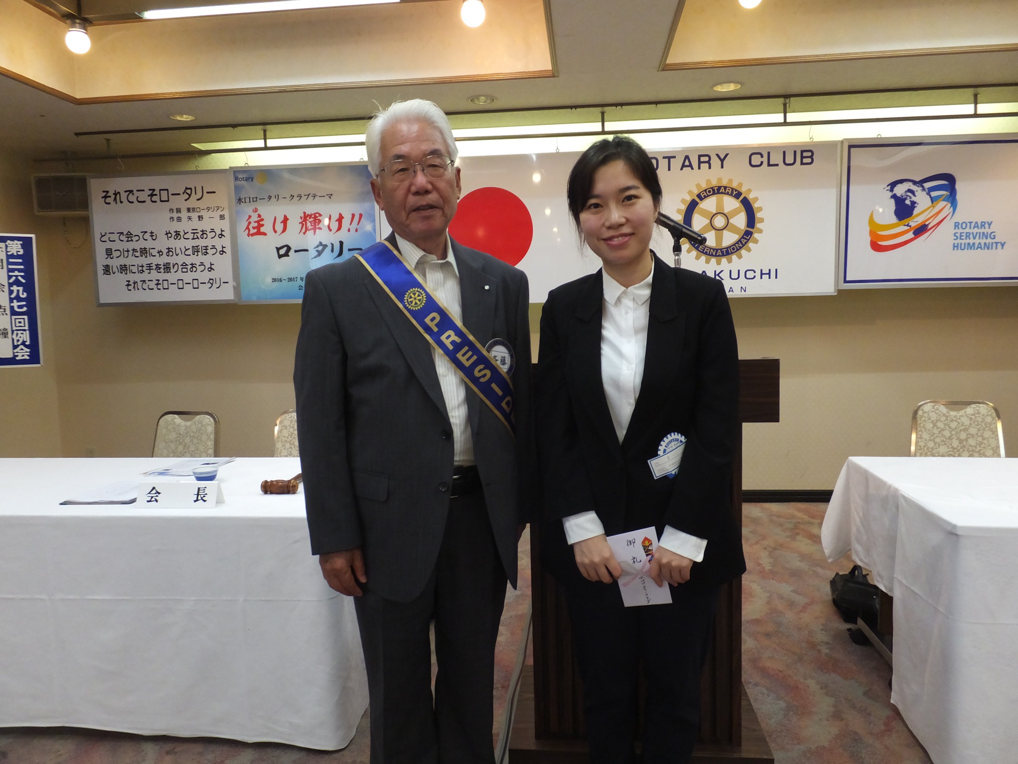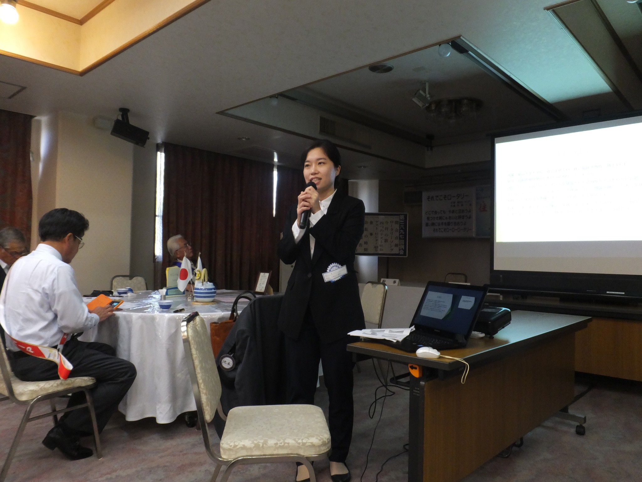 平成28年10月18日(火)米山奨学生 李ナリ様(龍谷大学博士3年)にお越しいただき「日韓の文化と交流」と題して卓話していただきました。