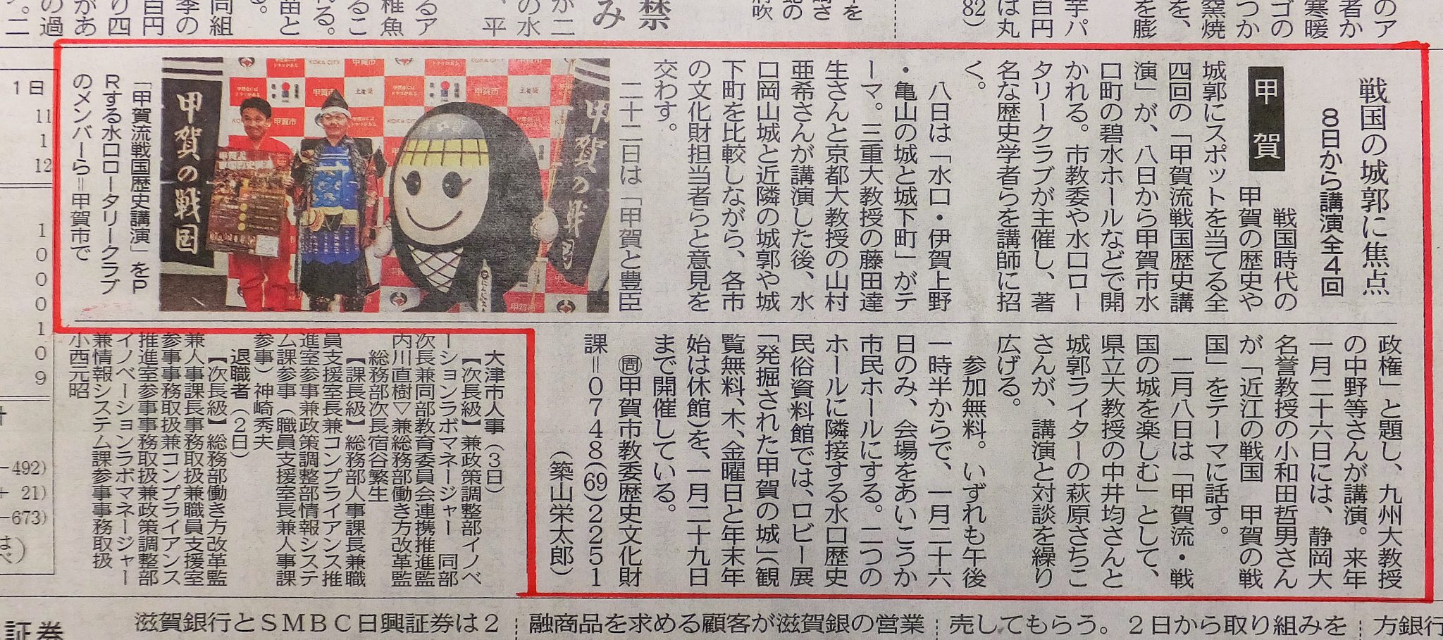 ロータリー財団地区補助金事業 甲賀流戦国歴史講演の広報活動