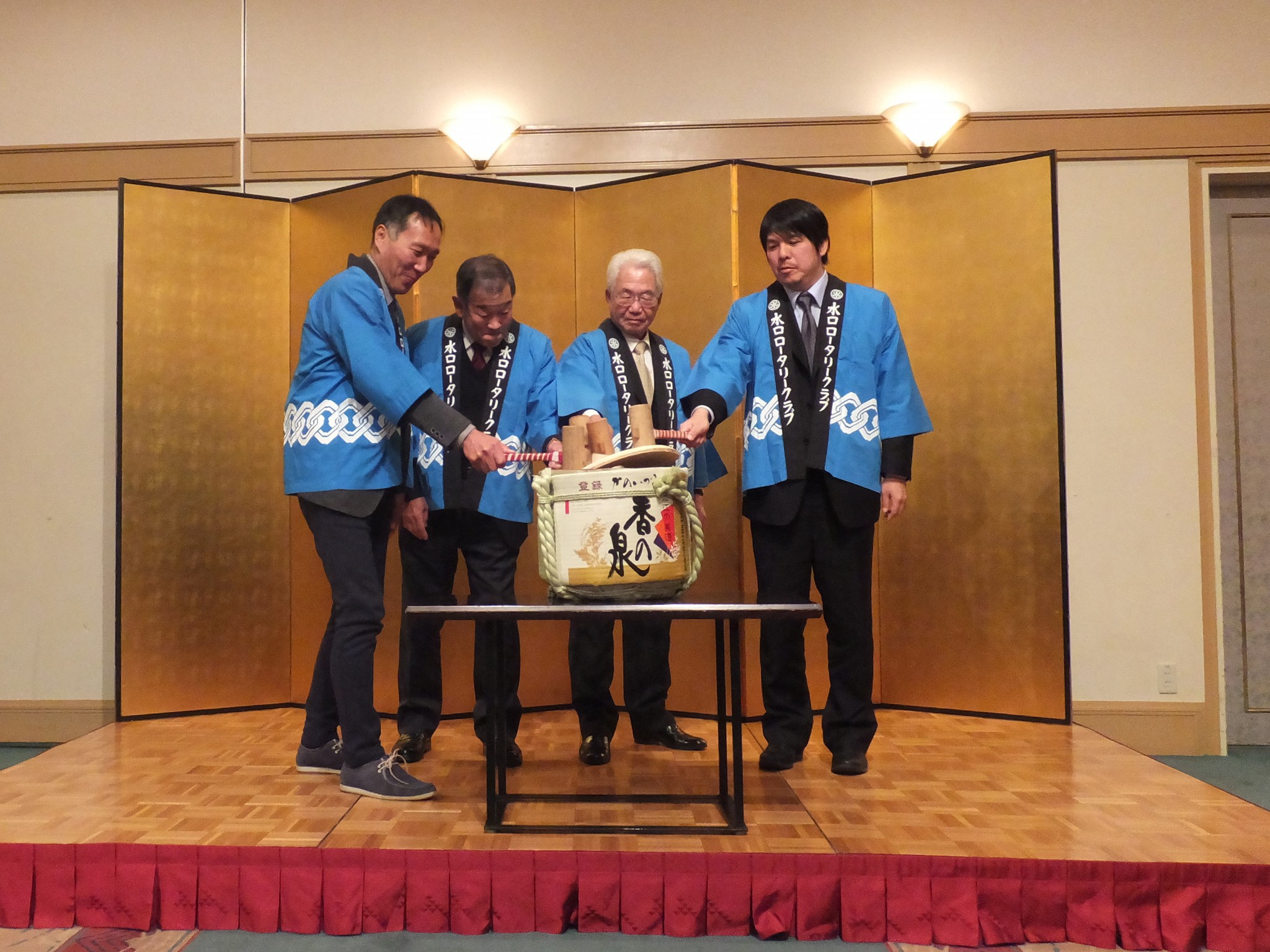 当日は新会員 石神義隆氏の入会式、「六友会」の和太鼓演奏、酉年生まれの会員による鏡開きが行われました。