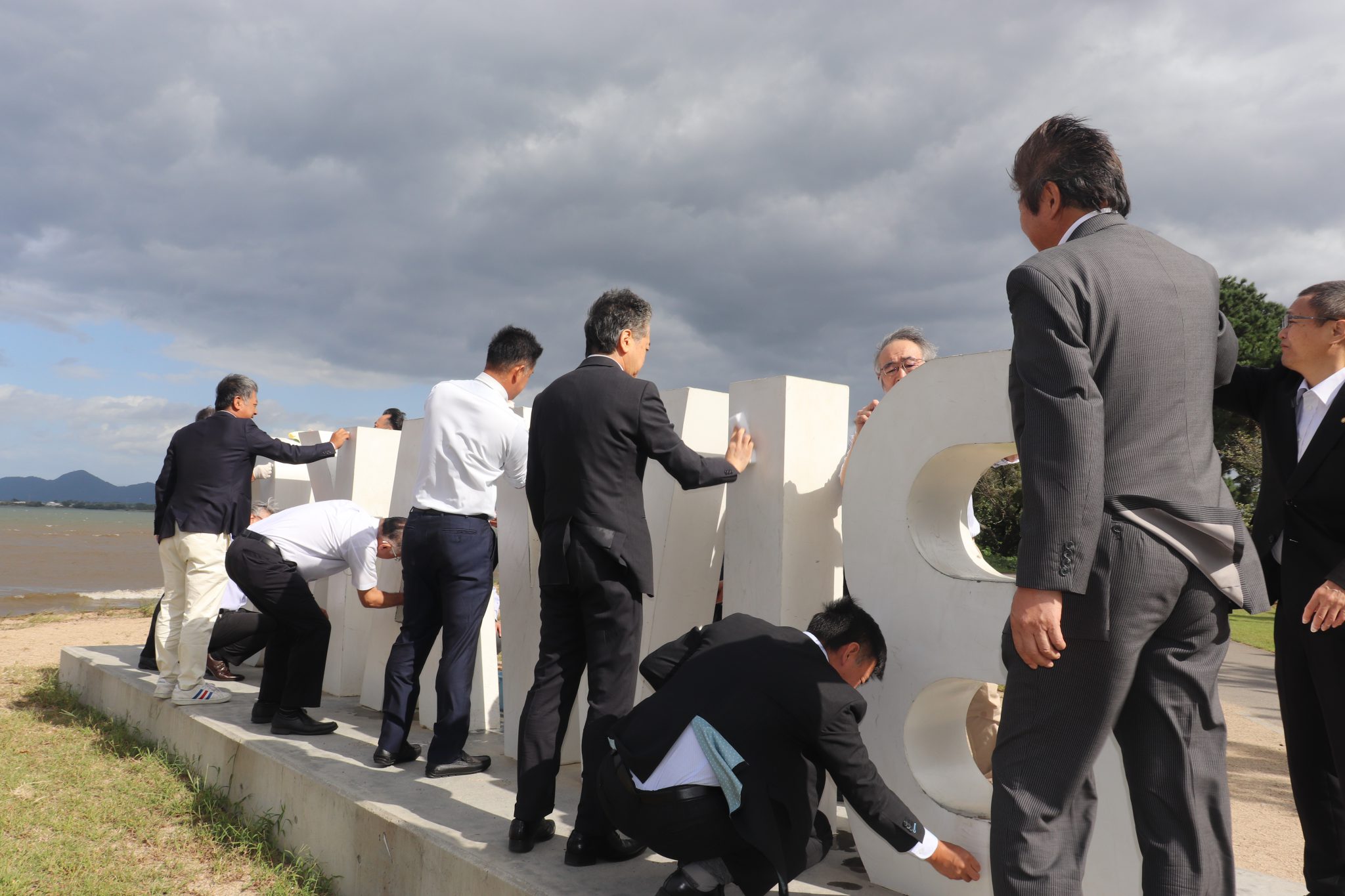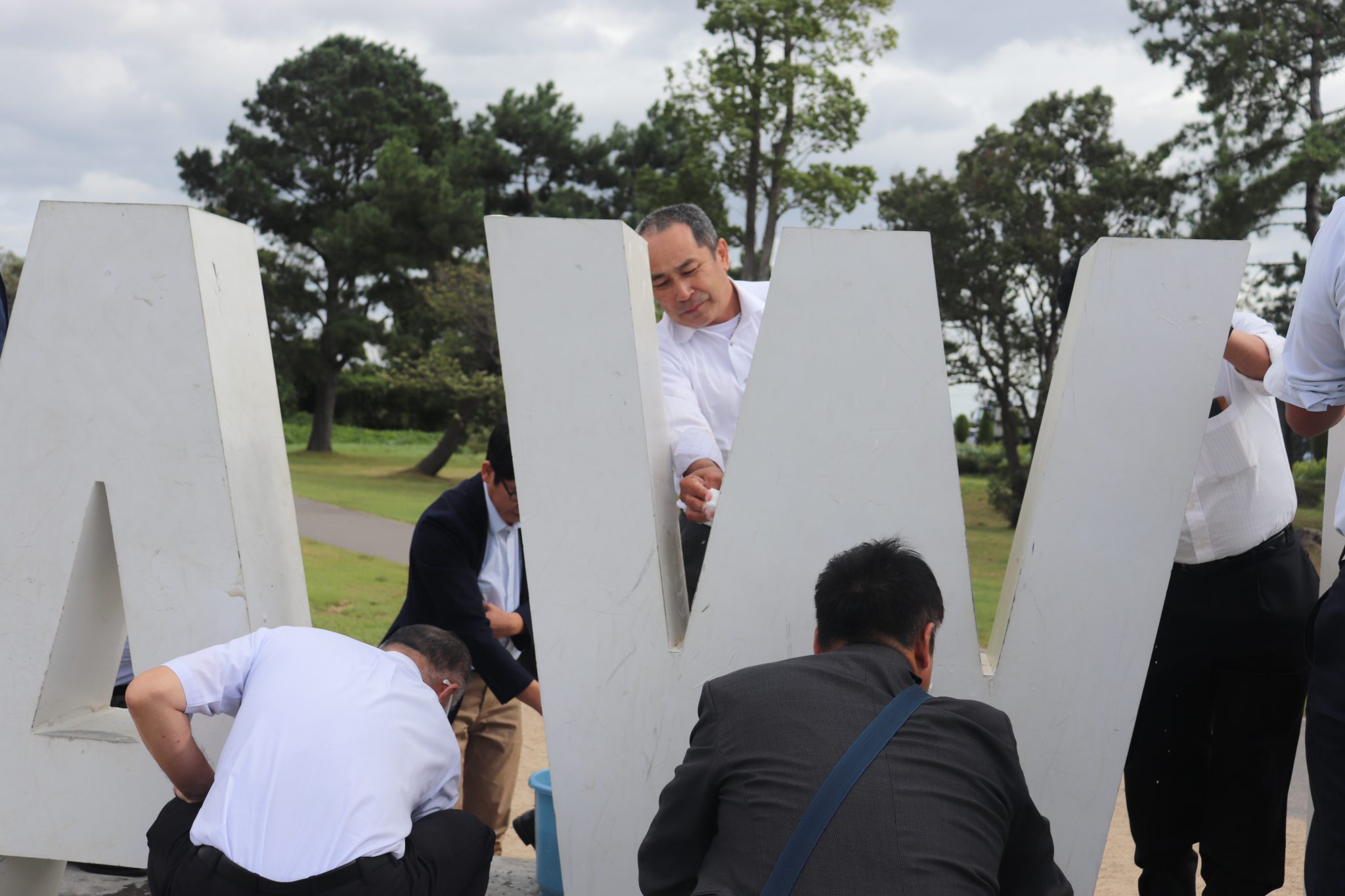 例会終了後、守山ロータリー50周年事業として設置し、その後守山市に寄贈した「BIWAKO」モニュメントが汚れやペンキの剥げているところが目立ってきたので、清掃、整備をメンバー有志で行いました。スーツ姿のままペンキを塗っているシュールな姿をご覧ください。有志の皆さんご苦労様でした。