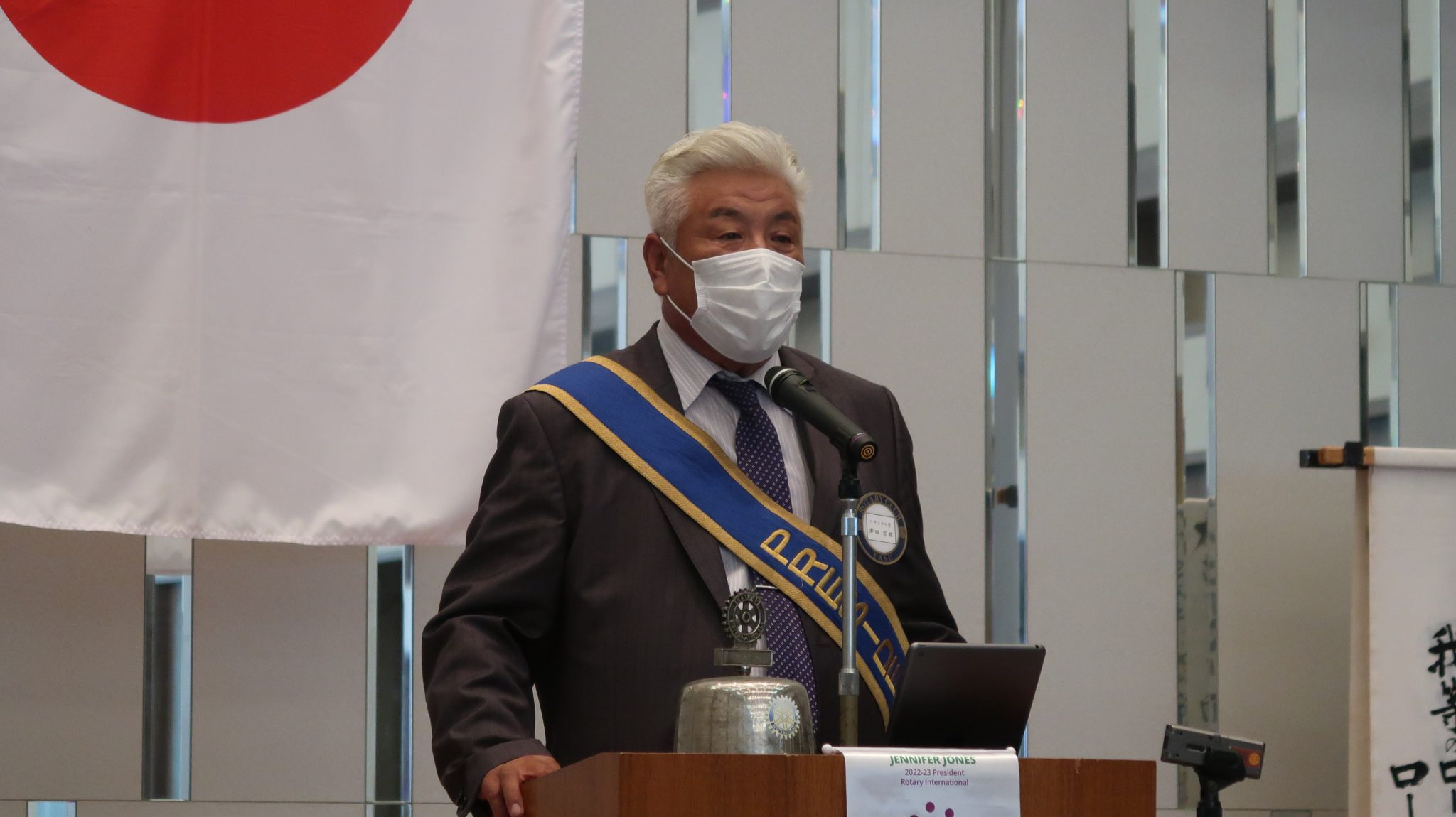 国際ロータリー第2650地区尾賀康裕ガバナー、守本洋季ガバナー補佐、田中勝幹事長、本日は大変お忙しい中、またコロナ禍の中、ようこそ守山ロータリークラブにお越しくださいました。会員一同、心より歓迎申し上げます。 尾賀ガバナーは地区スローガンとして、「感動、感激、そして感謝」と掲げられ、コロナで沈滞しかけているクラブの活力と輝きを取り戻し、一気に活性化を図ろうとされています。 また、地区運営方針として奉仕(布施)と親睦(多様性)の実践を掲げられ『ロータリー運動の原点に帰りましょう』『心のオアシスとなるクラブにしましょう』『一人でも多くの人とロータリーを分かち合い ましょう』と謳われておられます。このコロナ禍でついつい後ろ向きになるロータリー活動を、尾賀ガバナーのリーダーシップで前に進めて頂けることを期待しております。さて、守山ロータリークラブも50周年を終え、更に60年、70年と前に進んでいこうとしております。今年度の守山ロータリークラブのテーマを、「誇り高き奉仕を」 “Enjoy of Rotary“ とし、この3年弱出来ていなかった、奉仕活動、親睦活動を、より良い地域社会、より良い人々の為に知恵を絞って、誇り高き奉仕活動、誇り高きロータリークラブを実践し、ロータリー活動を楽しんで、世界平和、地域発展に貢献していきたいと思います。どうか尾賀ガバナーのご指導、ご鞭撻をお願い致します。 尾賀ガバナーにおかれましては、11月まで公式訪問を続けられます。コロナ禍でもありますので、健康管理には十分ご留意頂き、今後益々のご活躍を心より御祈念申し上げます。