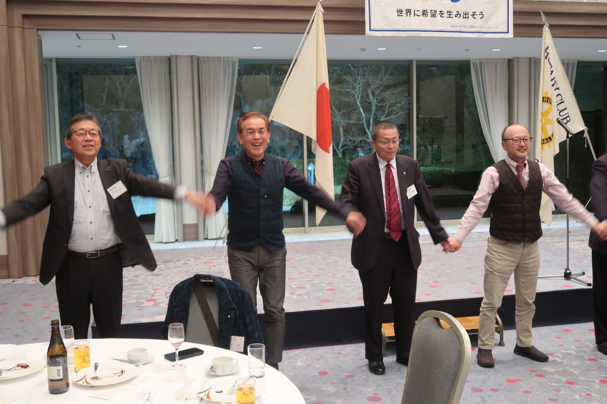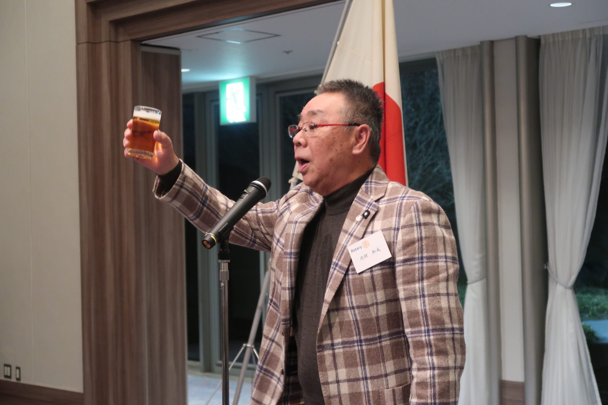 例会終了後懇親会を開催。例年は家族をお招きしての親睦例会ですが、本年は会長の思い(メンバーの結束を固めたい)もあって本年はメンバーのみの懇親会になりました。