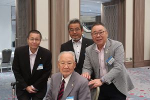円城得寿君(左)、立入一道君(真中奥)、三久保清君(真中前)、北村和成会長(右)