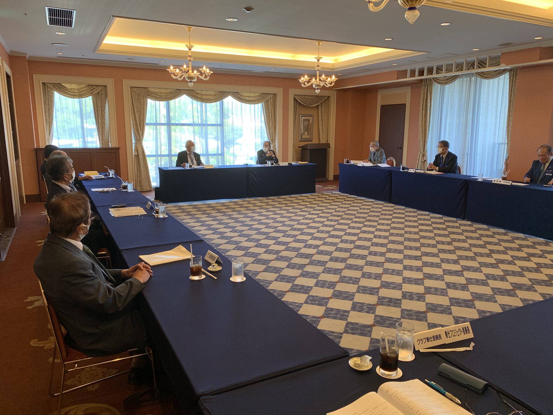 例会に先立ち13:30からガバナーと3クラブの理事がクラブごとに懇談会を行い、ロータリーのあり方やクラブ運営についての率直な意見交換がなされました。