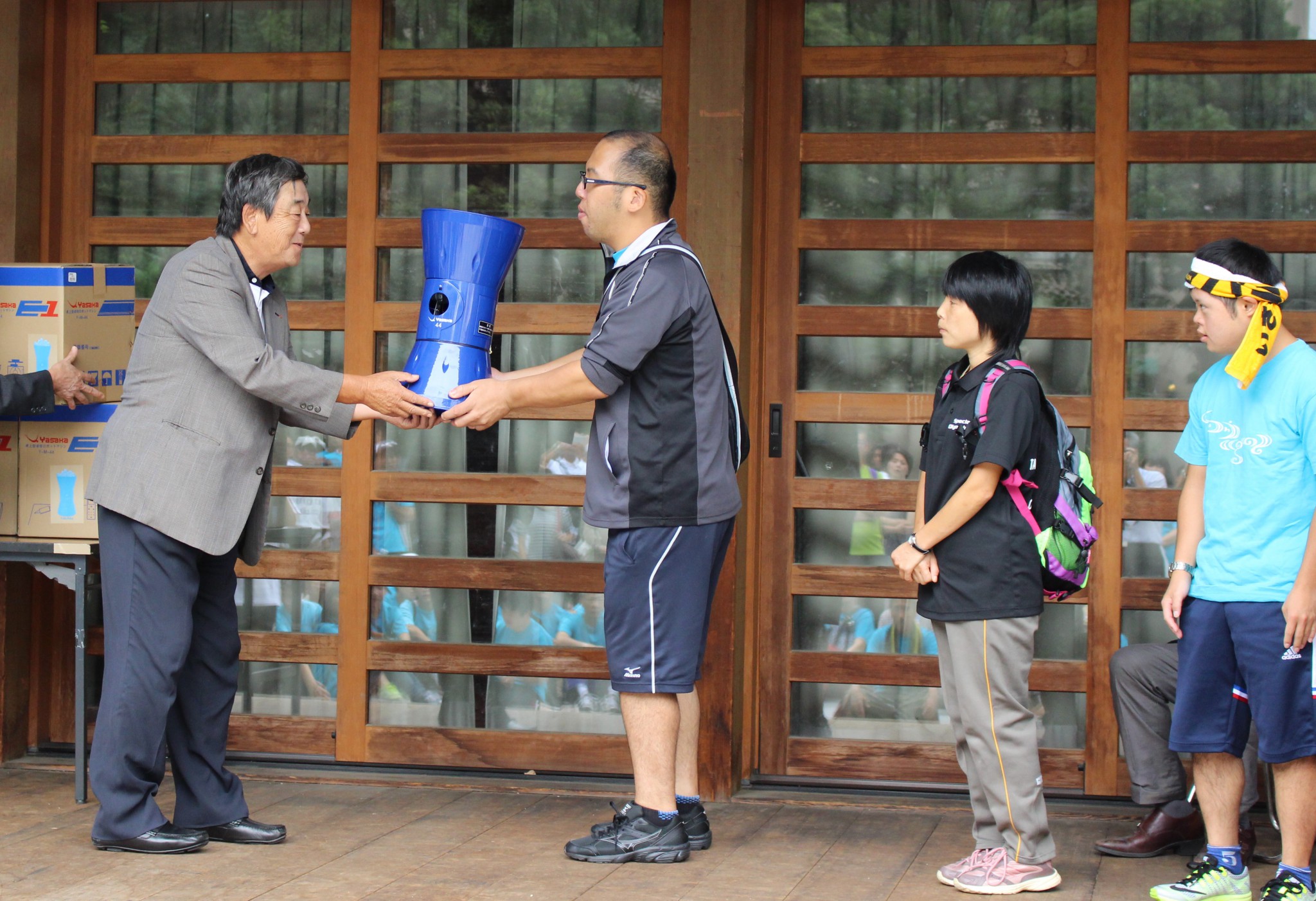 会長よりスペシャルオリンピックスのアスリートに記念品を(運動用具)贈呈