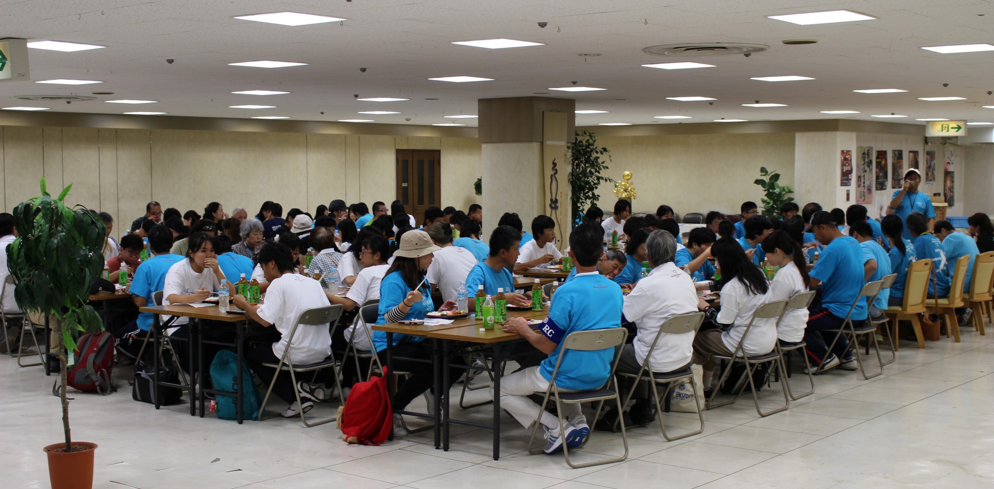 「トーチウォーク」後、みんなで食事をしながら歓談。