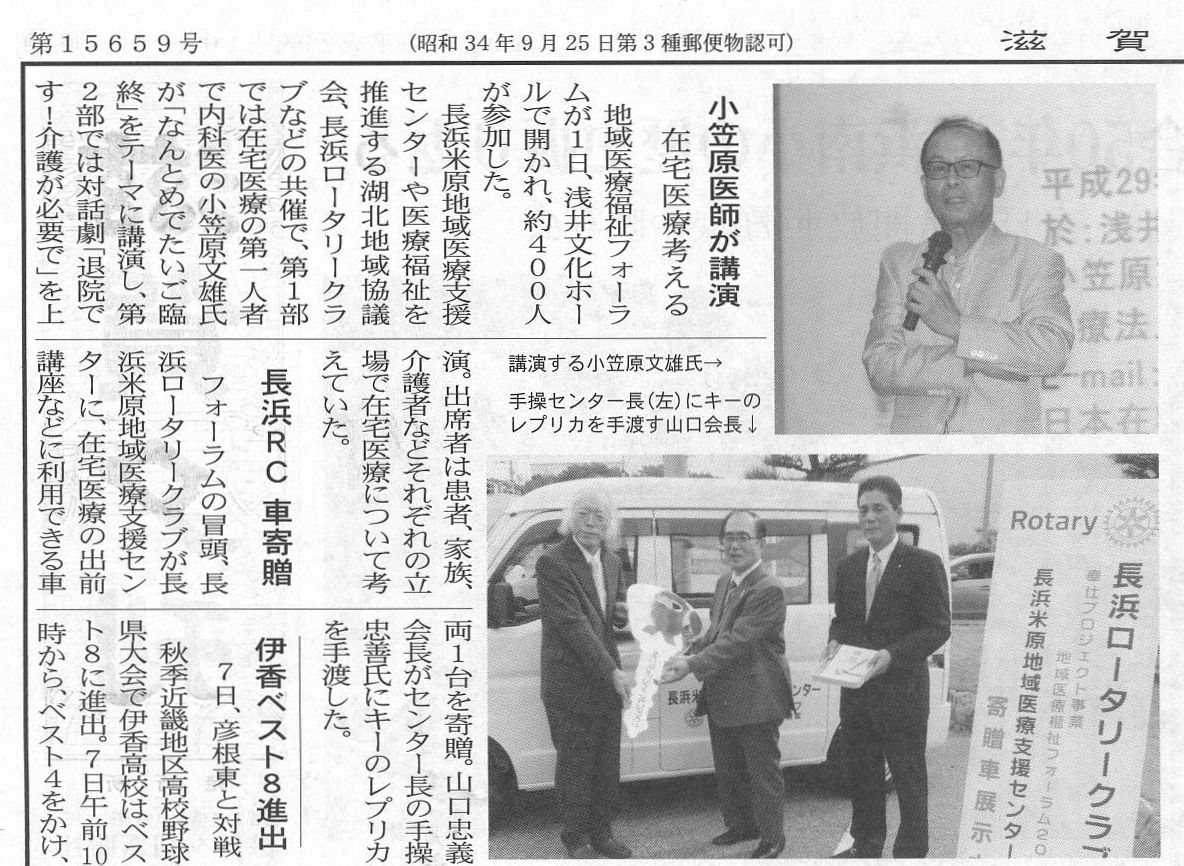 長浜ロータリークラブでは、2017年10月1日(日)に、奉仕プロジェクト事業として、