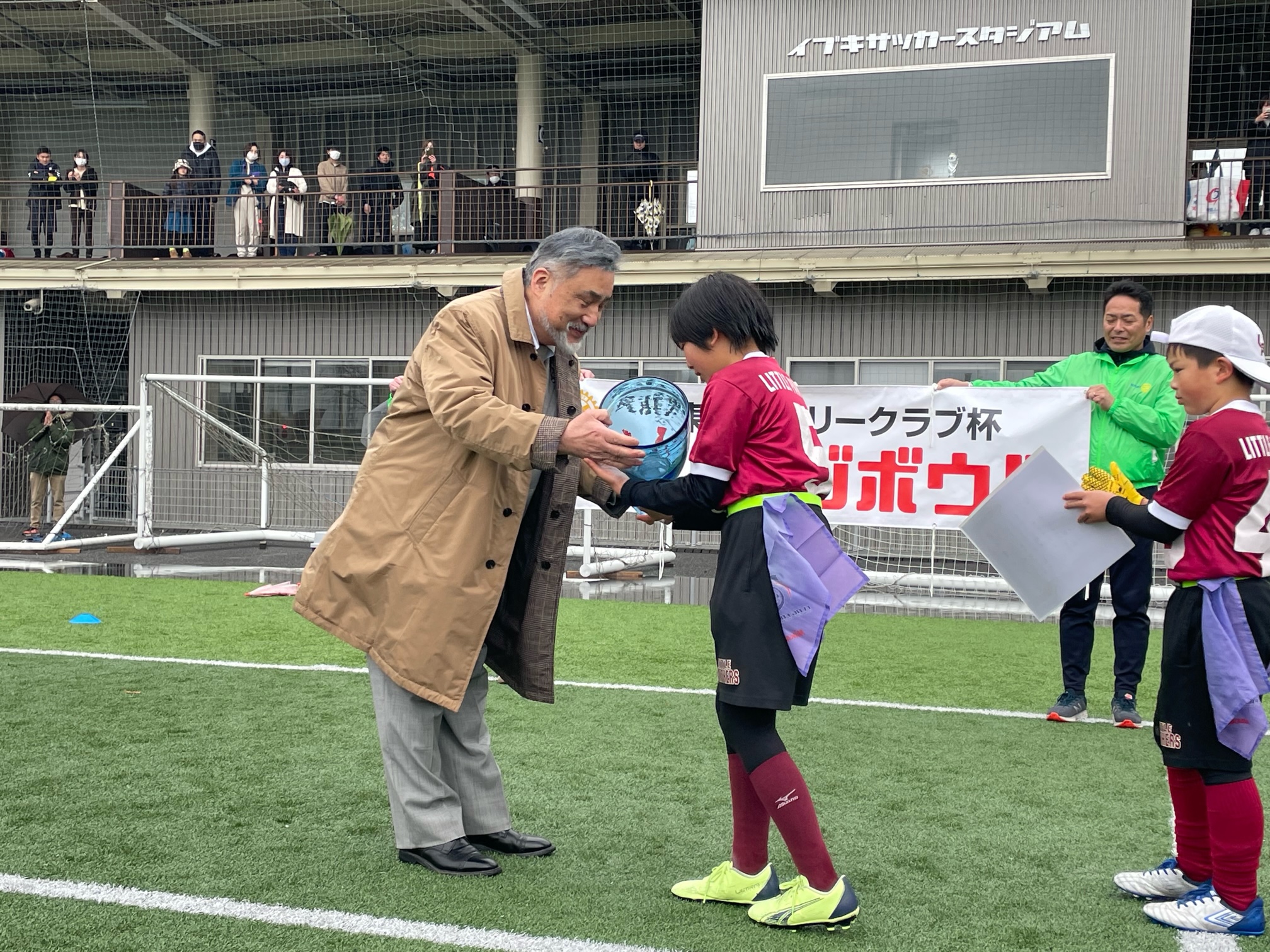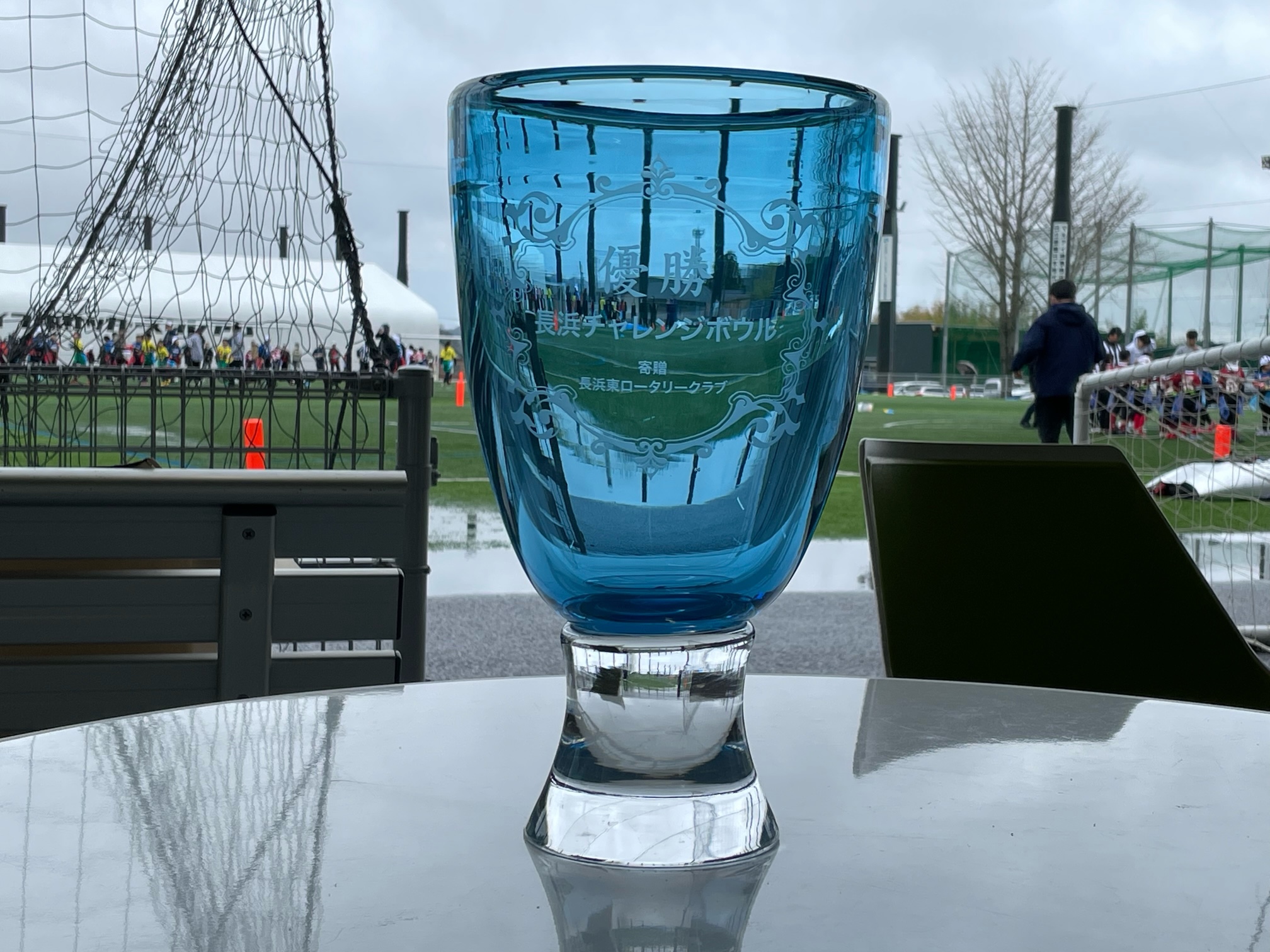 今回の大会開催にあたり、当クラブから優勝カップと大会横断幕を寄贈し、大会の表彰式では吉田会長より大会優勝チームへ優勝カップを授与しました。ずっしりと重みのある優勝カップを受け取った子ども達から「かっこいいカップ」と大変感謝されました。そして、当クラブメンバーによって大会運営支援も行ないました。