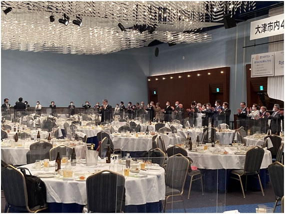 2月21日、琵琶湖ホテルに4RC計136名のメンバーが集まり、3年ぶりの合同例会が大津ロータリー主管で開催された。
