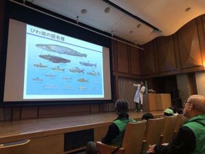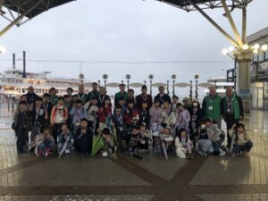 令和7年11月9日(日)琵琶湖環境学習を行いました。当初は環境学習船 Megumi で浜大津港から草津烏丸半島港へ行き、琵琶湖博物館を見学して、Megumi で浜大津港へ戻ってくる予定でしたが、琵琶湖の水位低下の影響で Megumi が草津烏丸半島港へ接舷できない為に、堅田の琵琶湖大橋港へ接舷し、貸し切りバス2台で琵琶湖大橋を渡って琵琶湖博物館へ行き、貸し切りバスで浜大津港まで帰ることになりました。参加者は平野小学校の主に3年生・4年生の31名と、平野小学校の校長先生や保護者の方など9名と、大津中央ロータリークラブのメンバーです。
