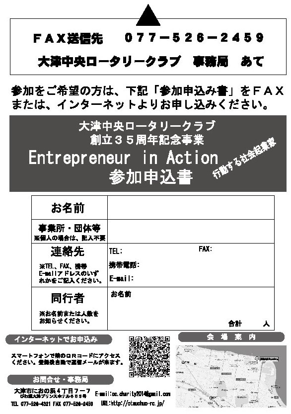 大津中央RCでは、地域経済をけん引するロールモデルとなる起業家の輩出や、社会的課題の解決に挑戦する社会起業家の育成など、企業支援施策の充実に取り組んでいます。この取り組みの一環として、社会起業家の裾野の拡大と成長の後押しを図ることを目的に、社会起業家を招いたトークイベントを、創立35周年記念事業として開催します。