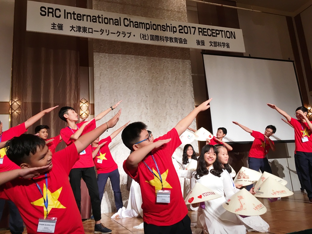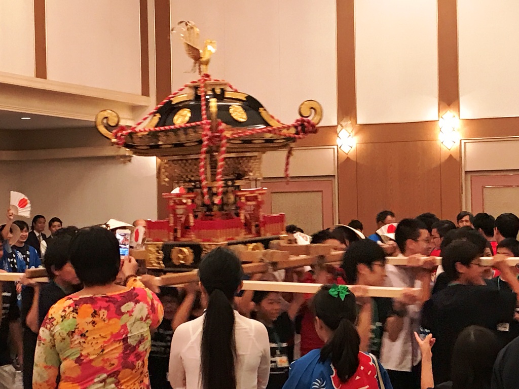 聖パウロ学園光泉中学・高等学校において、アジア3カ国(韓国、ベトナム、日本)の子どもたちを集めて行われた国際合宿のレセプションを主催しました。参加各グループの英語プレゼンテーションと食事会により、メンバーの親睦と友好の向上を図りました。和太鼓による演奏の後、木村会長による英語での挨拶に続き、ベトナム、韓国の代表より返礼の挨拶で開会。食事歓談の後は、各国グループからの文化発表での交流となりました。閉会式では、国際科学教育協会の代表の北原先生の挨拶の他、日本の祭の紹介と建部神社の子ども神輿で大いに盛り上がりました。