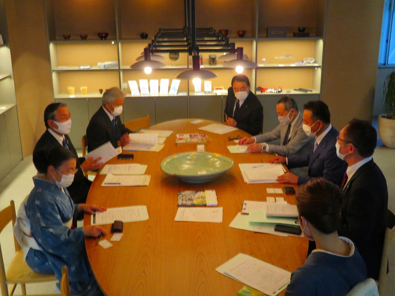 例会に先立ち会長幹事懇談会が開かれ、当クラブから大橋会長、野呂幹事はじめ、副会長、副幹事、地区委員が出席。